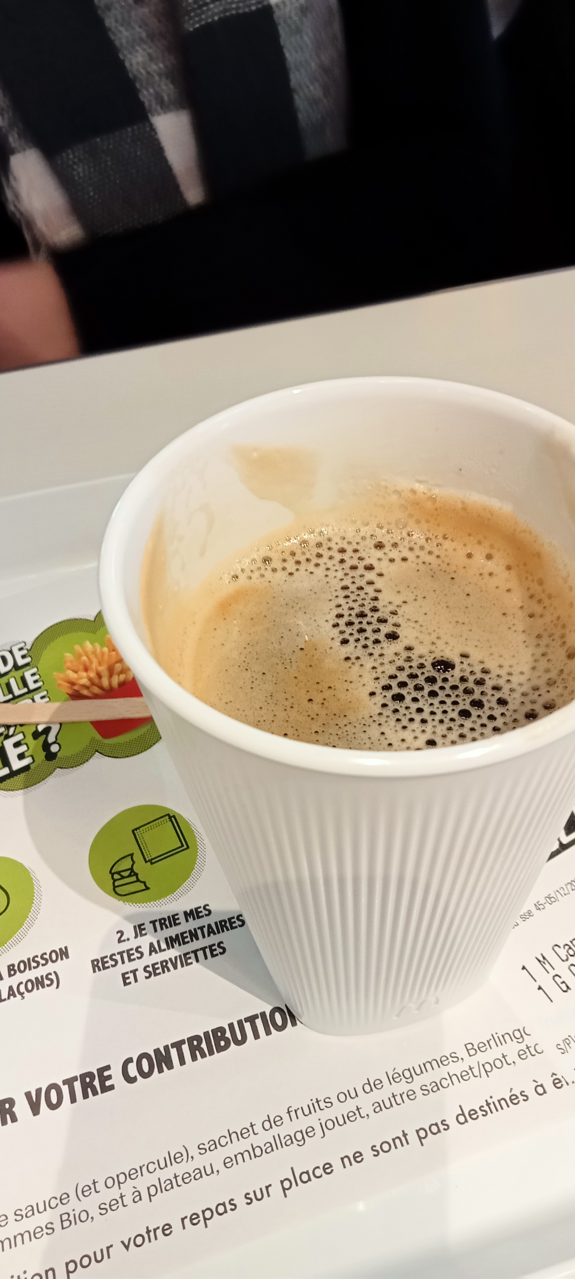 Il n'y avait pas de chevalet disponible aux bornes de commande. C'est dommage d avoir à surveiller les plateaux pour savoir si notre commande arrive ou non. Je voulais tester la vaisselle en plastique, ce qui est gênant c'est de ne plus pouvoir repartir avec sa boisson que je ne finis jamais au cours du repas. Je n'y retournerai donc certainement pas