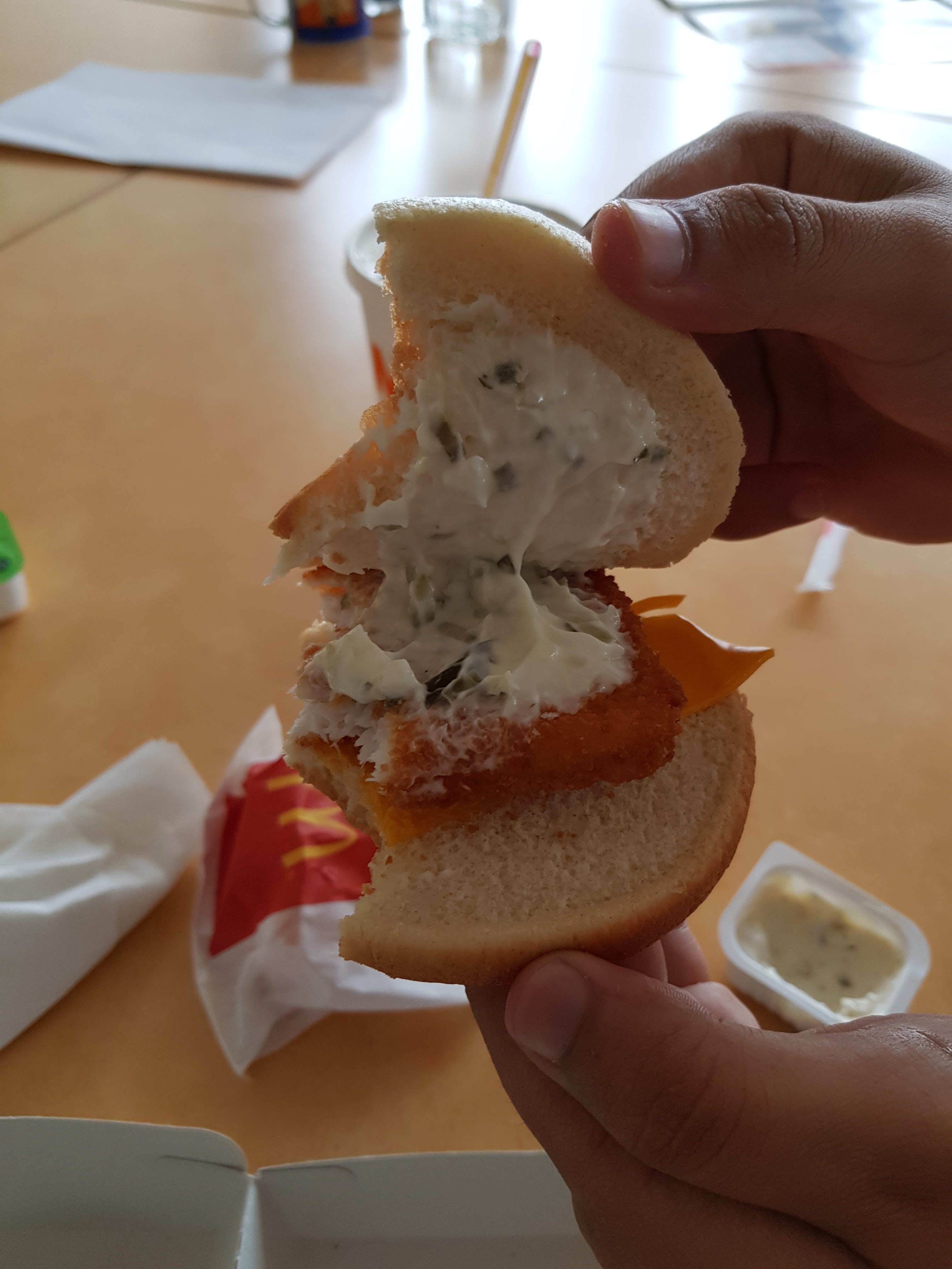 Je n'ai pas pensé a prendre en photo mon wrapp a moitié vide et les potatoes 50/50 de frites. Mais en photo un 280 vide et un fish sans rien. Donc même si c'est de la restauration rapide, on est a plus de 20 euros, donc c'est cher pour ne pas manger ce qui est commandé.