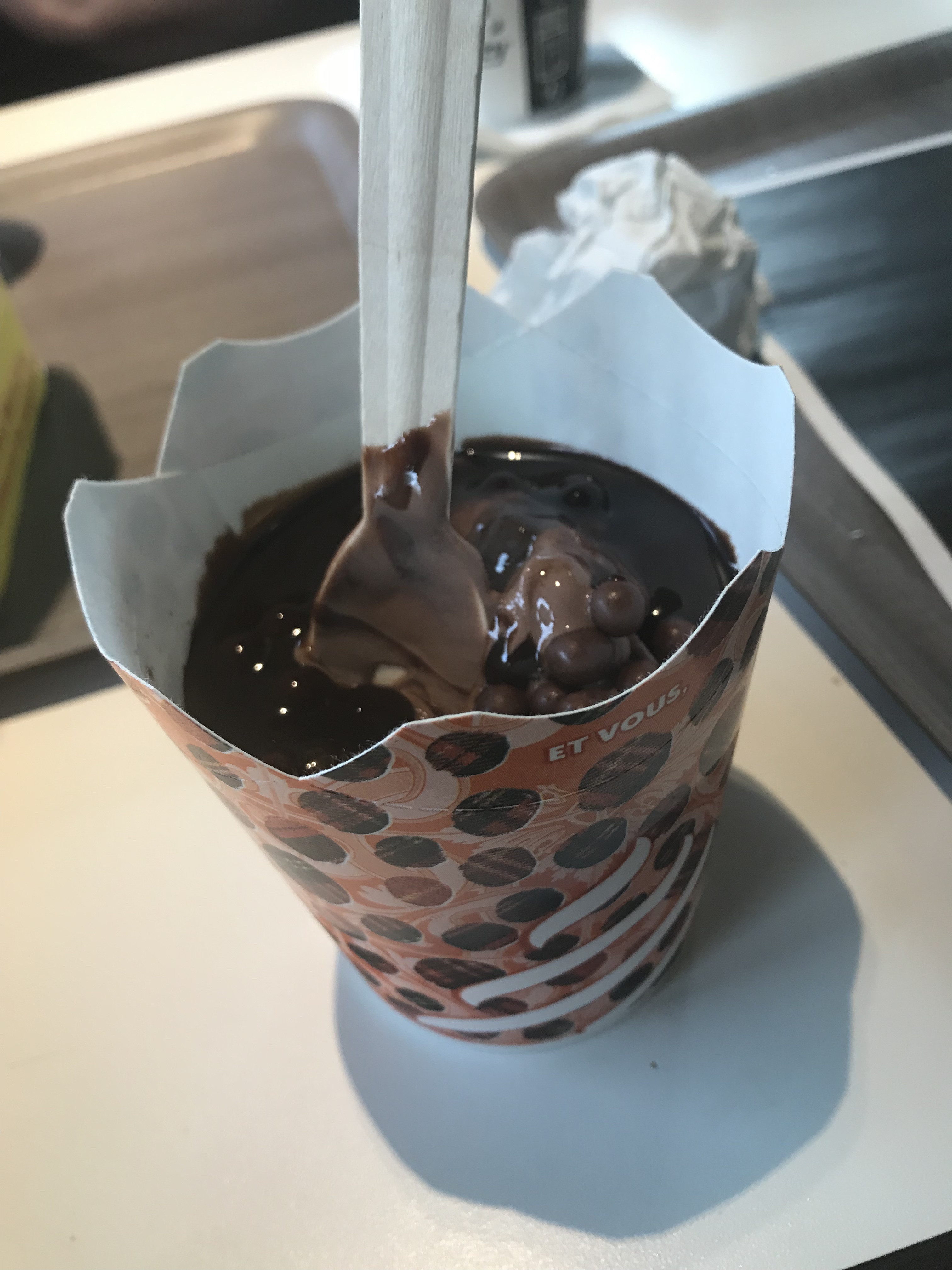 Mcfflury reste à désirer ! Rien en caramel et en boule kit kat. Et ce n'est pas la première fois que ça arrive. Alors payer 3 euros 10 pour avoir que la glace en elle même ça fait cher payer quand même !