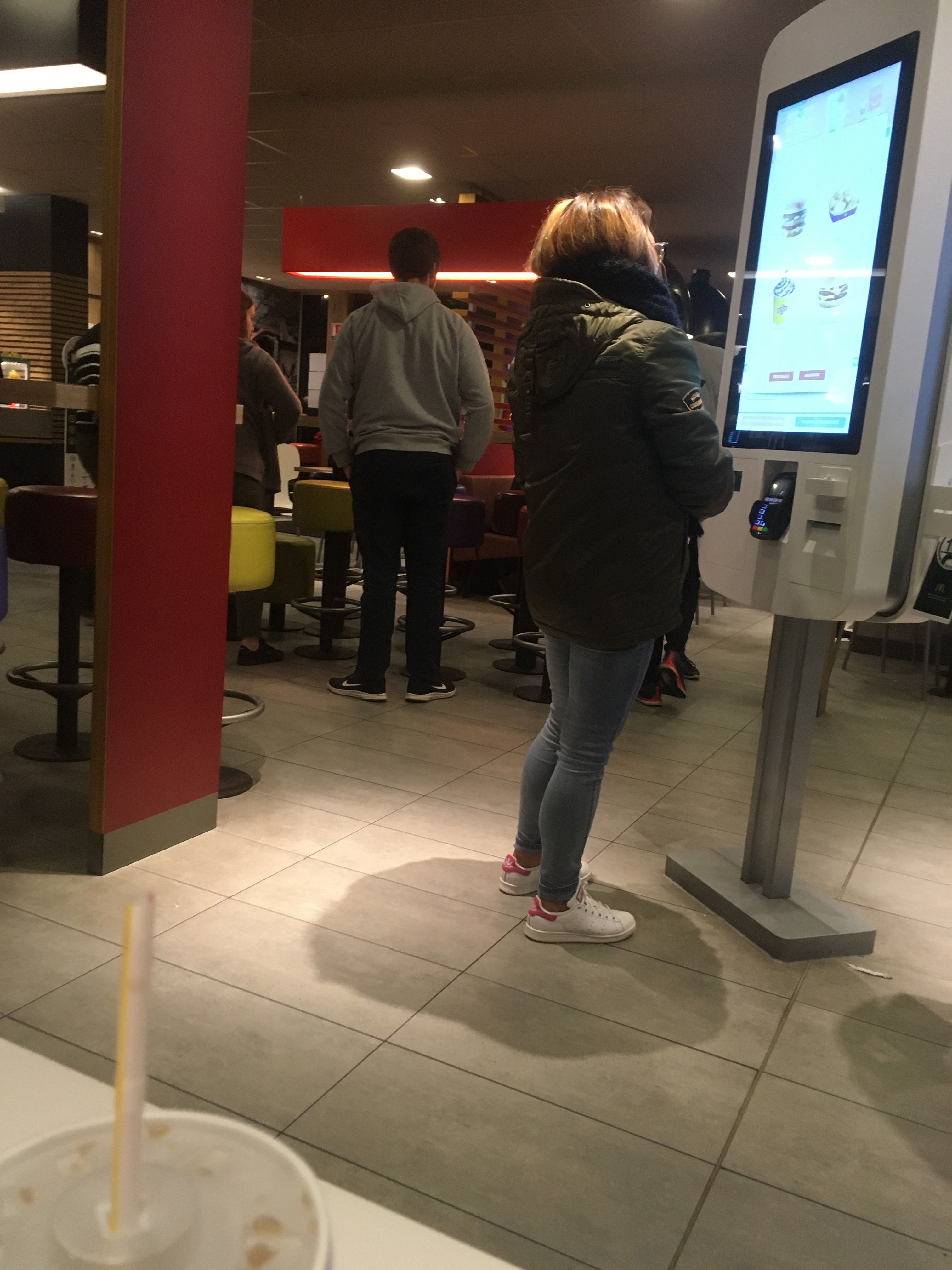 30 min d’attente, sol gras et très glissant mais le pire c’est les sacs en cartons a emporter. Ils ne tiennes pas dutout !!! Mon sac (sac a emporter) c’est arracher et toutes mes boissons renversées. Mcdo coute déjà un bras alors avec des sacs qui tiennent pas et des boissons renversées a cause des sacs non merci !