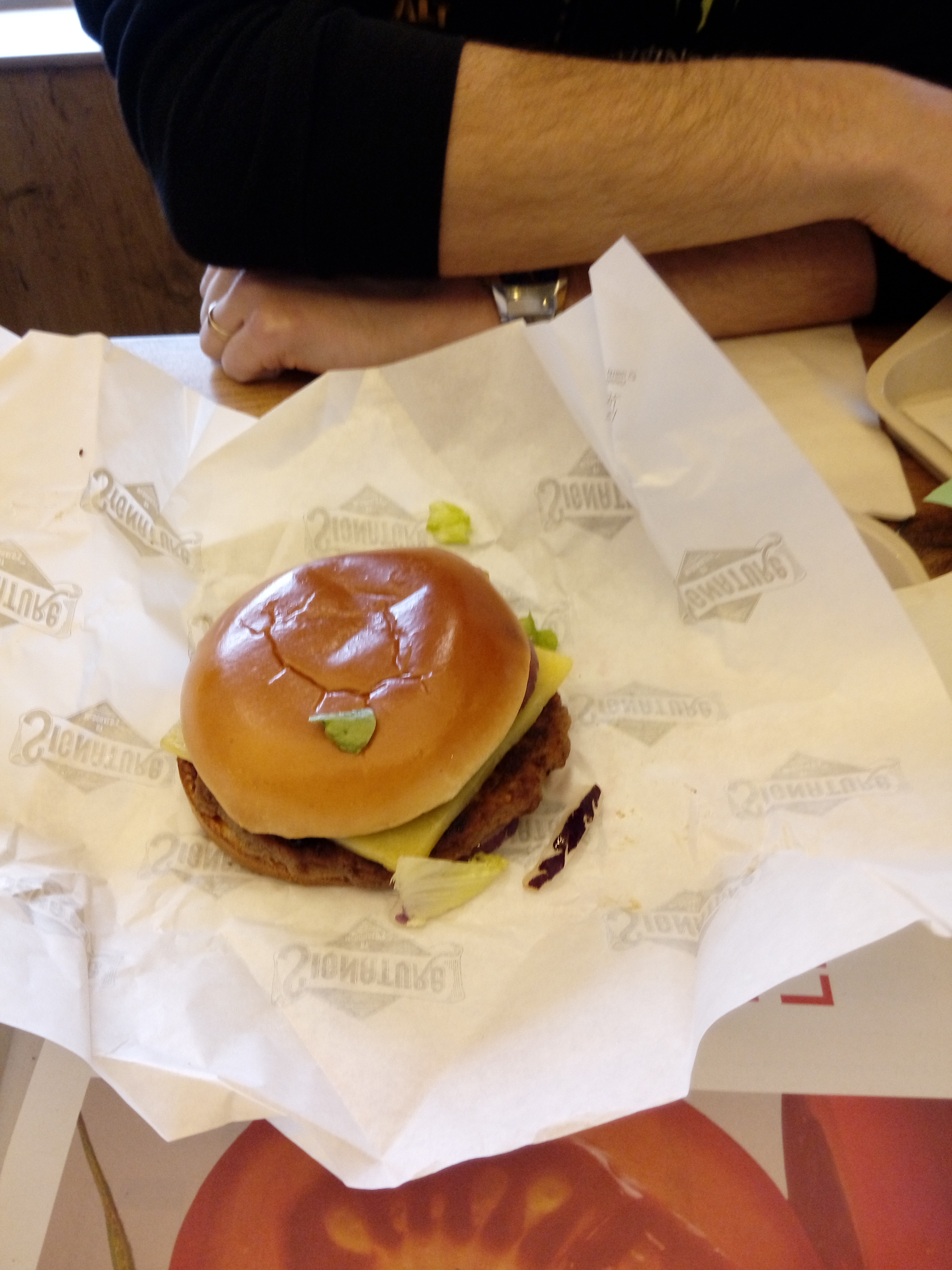 J’ai vraiment été déçue de la qualité des produits (frites et potatoes). Le personnel a été très gentil et aimable, très rapide et aucun oublie. Les hamburgers et nuggets étaient très bon, pas d’oublie de grill, et très chaud ! En revanche les accompagnements frites et potatoes étaient froid et mou, vraiment pas de bonne qualité, il faut faire attention à la qualité des produits…