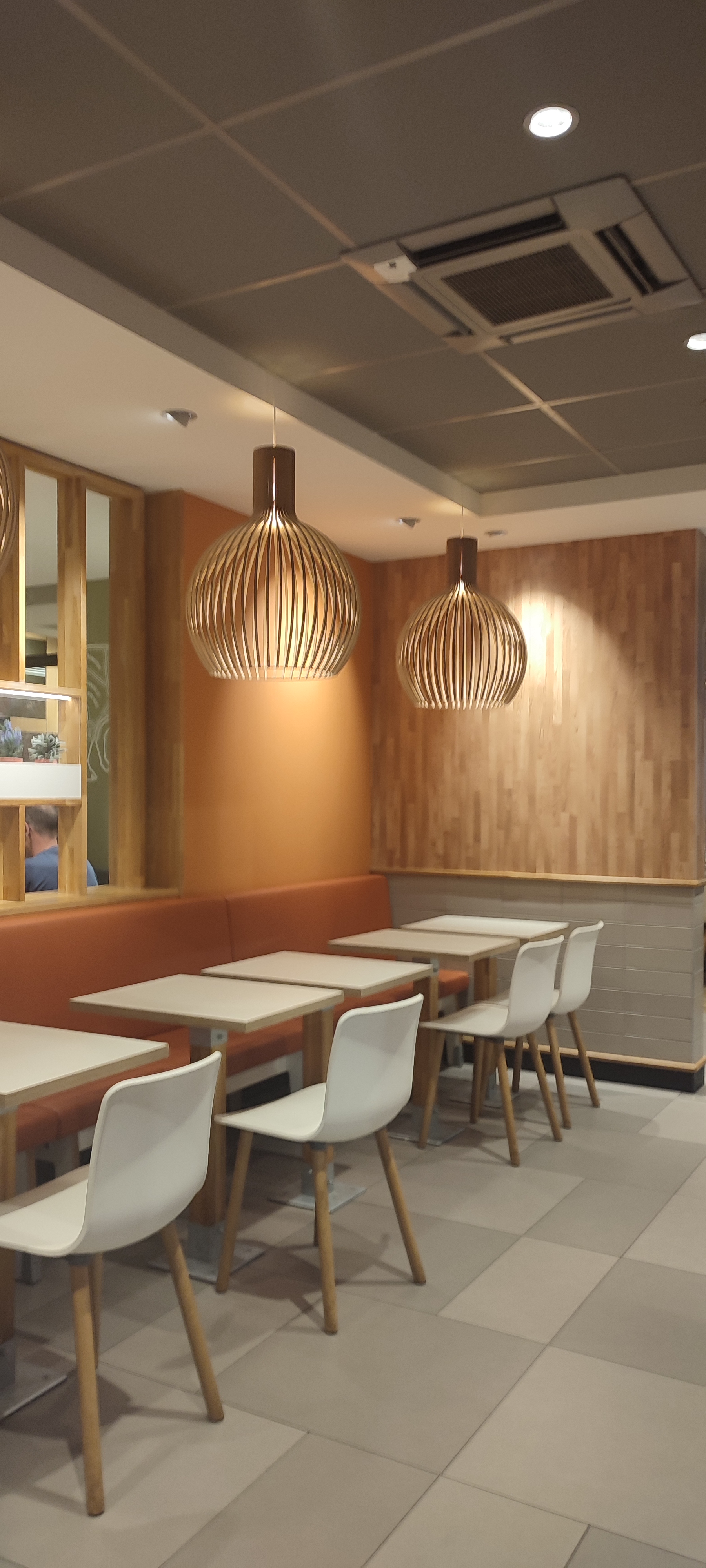 Très jolie déco entièrement refaite. La salle est sympa, service à table dans des contenants recyclables, toilettes bien entretenues. Petit bémol sur la propreté des tables, le nettoyage entre 2 clients n'est pas fait automatiquement. Petit point à améliorer.