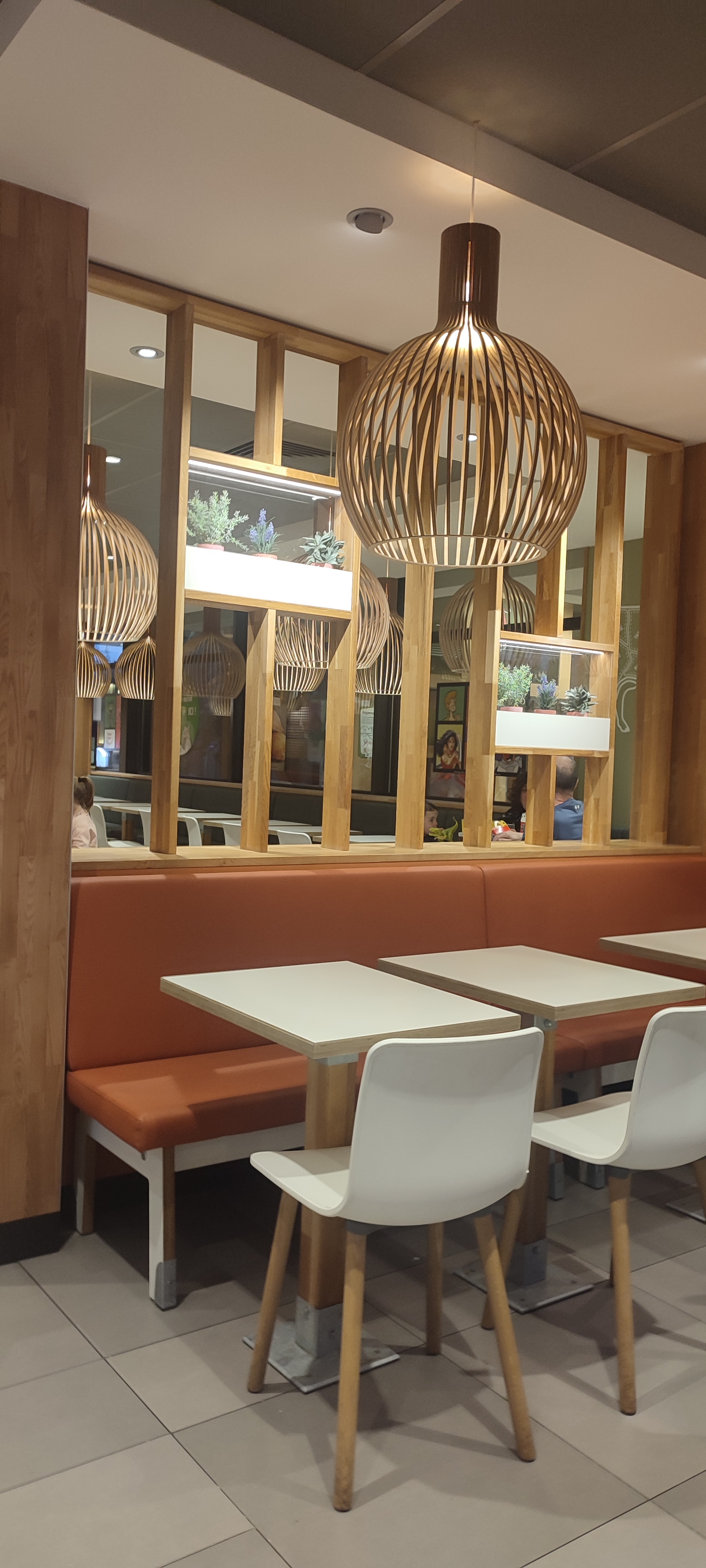 Ça faisait très longtemps que je n'y étais plus allé. Exit les hôtes de caisses avec leurs sourires et patience, exit les grands panneaux avec les menus disponibles et leurs prix. Grandes tablettes tactiles pour commander, si on ne sait pas ce qu'on veut et ce qu'il y a alors tant pis. Menus servi tièdes limite froid. Autant mettre un distributeur automatique comme pour les pizzas Très peu pour moi