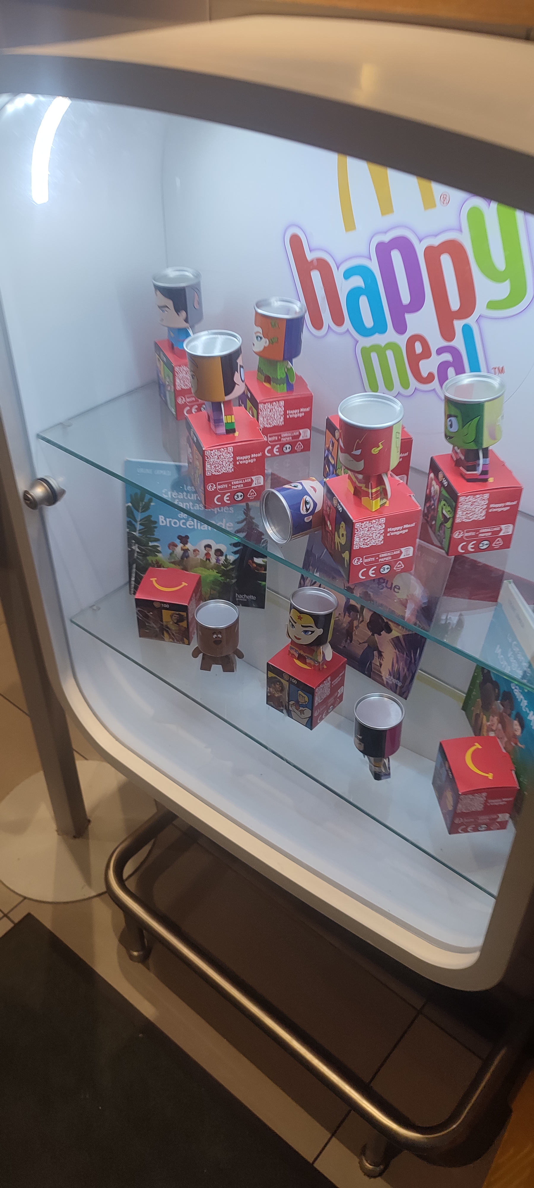 Happy Meals bon marché, mais toujours pas d'options végétariennes. McDonald's en France n'est pas très innovant dans les choix de repas. Contrairement à Burger King France et KFC France ou McDonald's Belgique, même en 2024, il n'existe toujours pas d'options végétariennes pour les adultes comme pour les enfants. Ce qui était innovant, ce sont les contenants en plastique dur recyclables pour les boissons, les nuggets et les frites. Le jouet inclus avec les Happy Meals était en carton et interactif, donc rien à redire là non plus. Nous avons passé un moment détendu pendant que mon véhicule électrique se chargeait près de Sports 2000. Il y a aussi un chargeur rapide pour véhicule électrique sur le parking McDonald's, mais il était en panne. A proximité se trouvent également un hypermarché Intermarché et un Aldi.