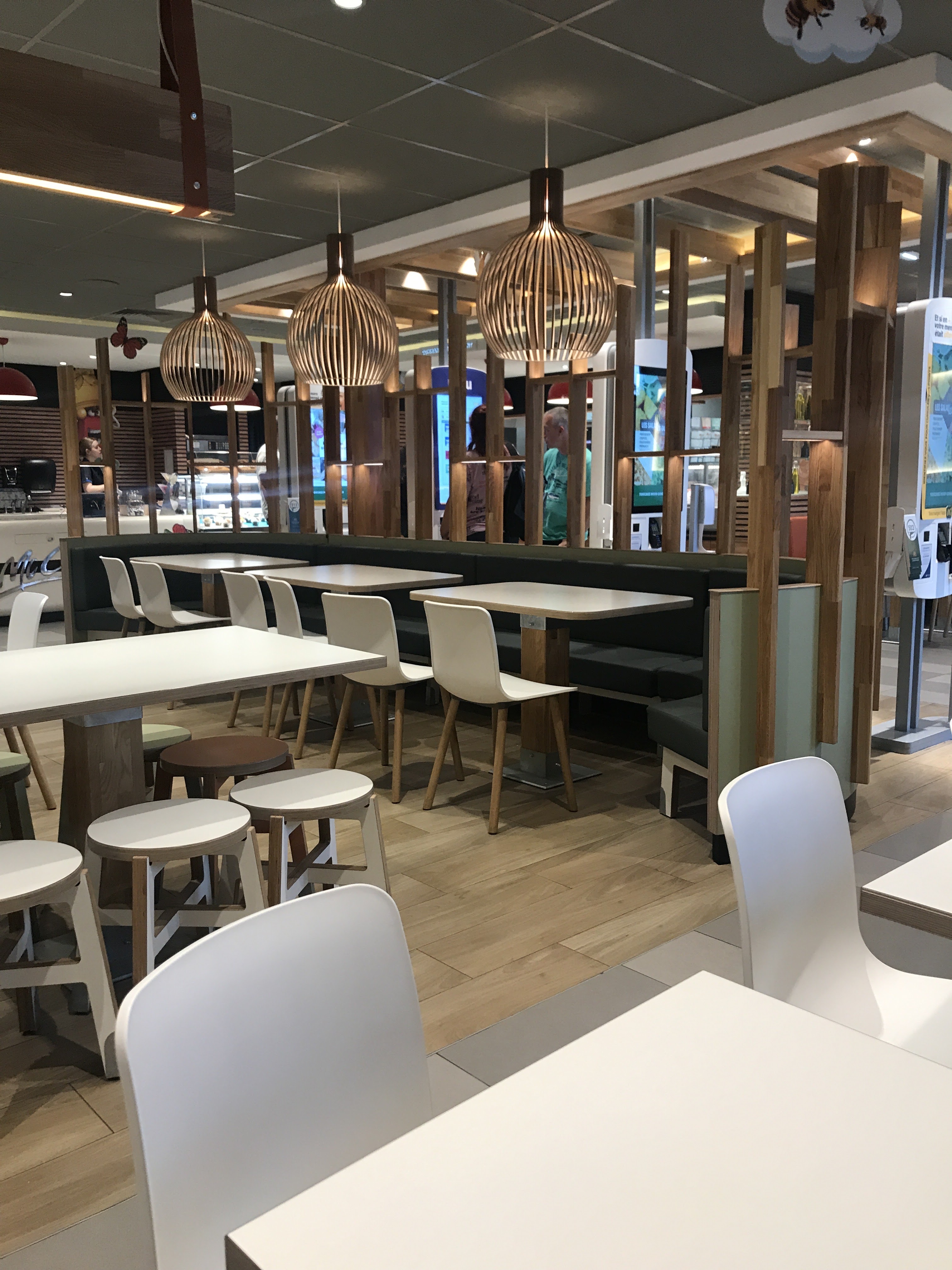 Un McDo au-dessus de la moyenne, neuf, propre, bien aménagé, avec jeux enfants xxl à l'intérieur et à l'extérieur. Parfait pour les familles. Service efficace avec une mention spéciale pour le McCafe où on peut commander en direct et se faire servir au comptoir et avec le sourire ! Pour le rapport qualité-prix on repassera, grosse baisse qualitative depuis quelques mois dans tous les McDo. Je n'y mange plus, juste un café ou un smoothie qui eux sont pas mal avec bon rapport qualité prix.