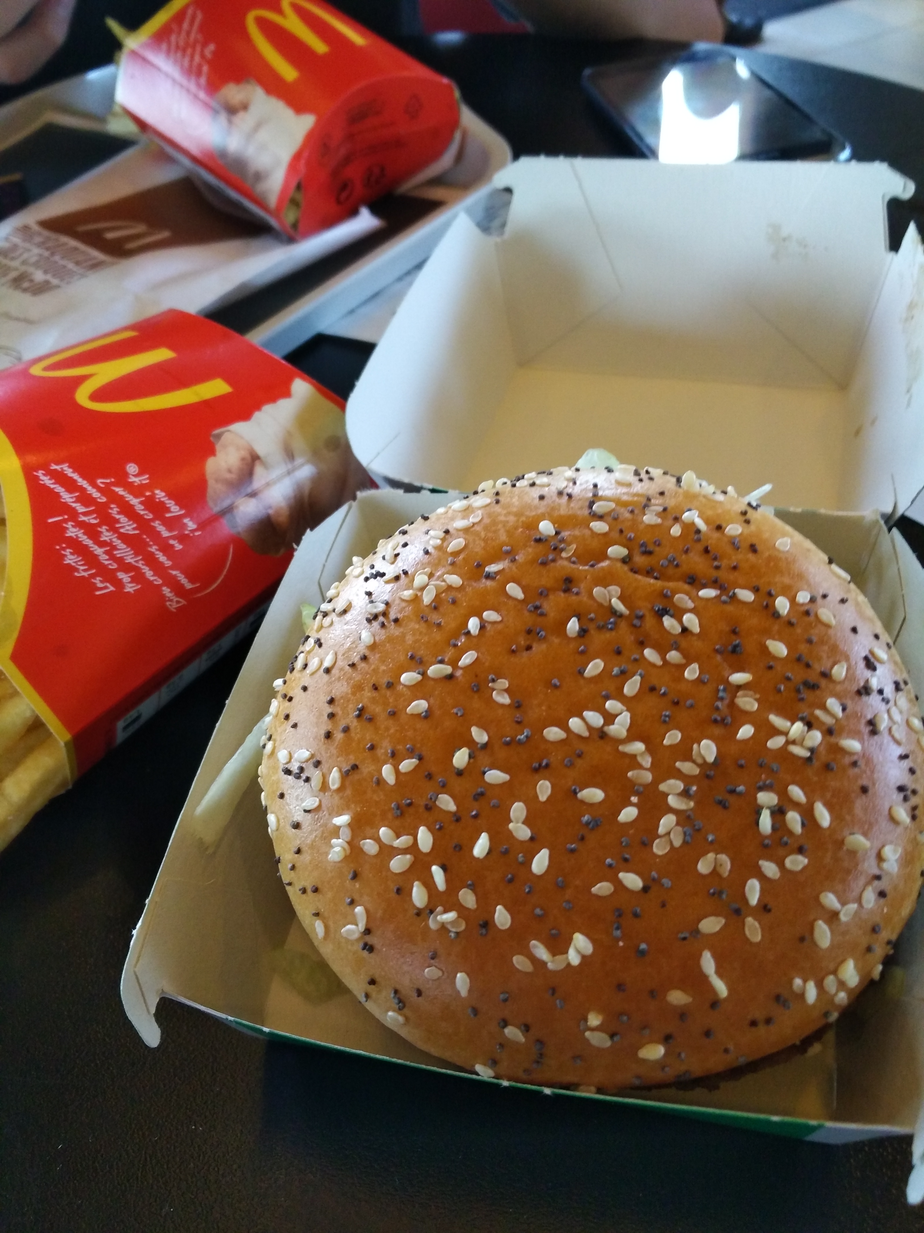Longtemps que j'étais pas allé au McDo. Mais à 22h c'est compliqué de trouver un truc à manger vers Pons... Surprise dans la boîte avec 3 frites et 2 pauvres morceaux de lard dedans pour un maxi bestof . Bah en fait je crois que c'est la dernière fois que j'y mets les pieds ... Surtout vu le prix .. c'est de l'arnaque... Voir la photo qui donne envie...