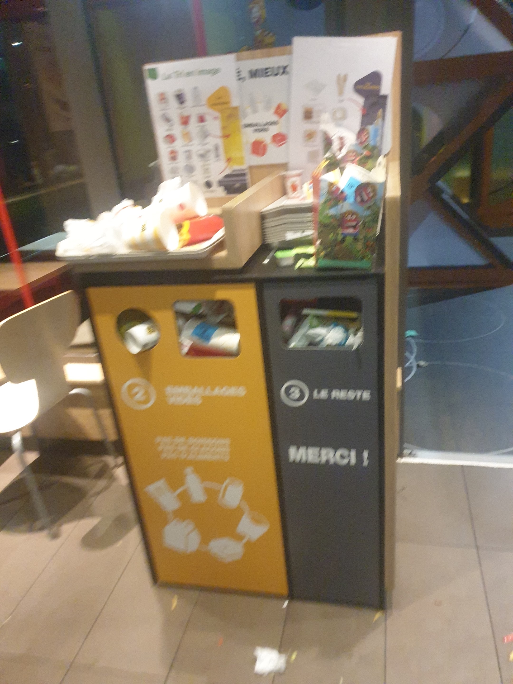Nous y allons toujours de temps en temps car ça reste le macdo. En revanche les locaux sont de plus en plus sales... Les couverts et recipients réutilisables sont mal lavés, restent gras... Ça devient malheureusement déplorable.