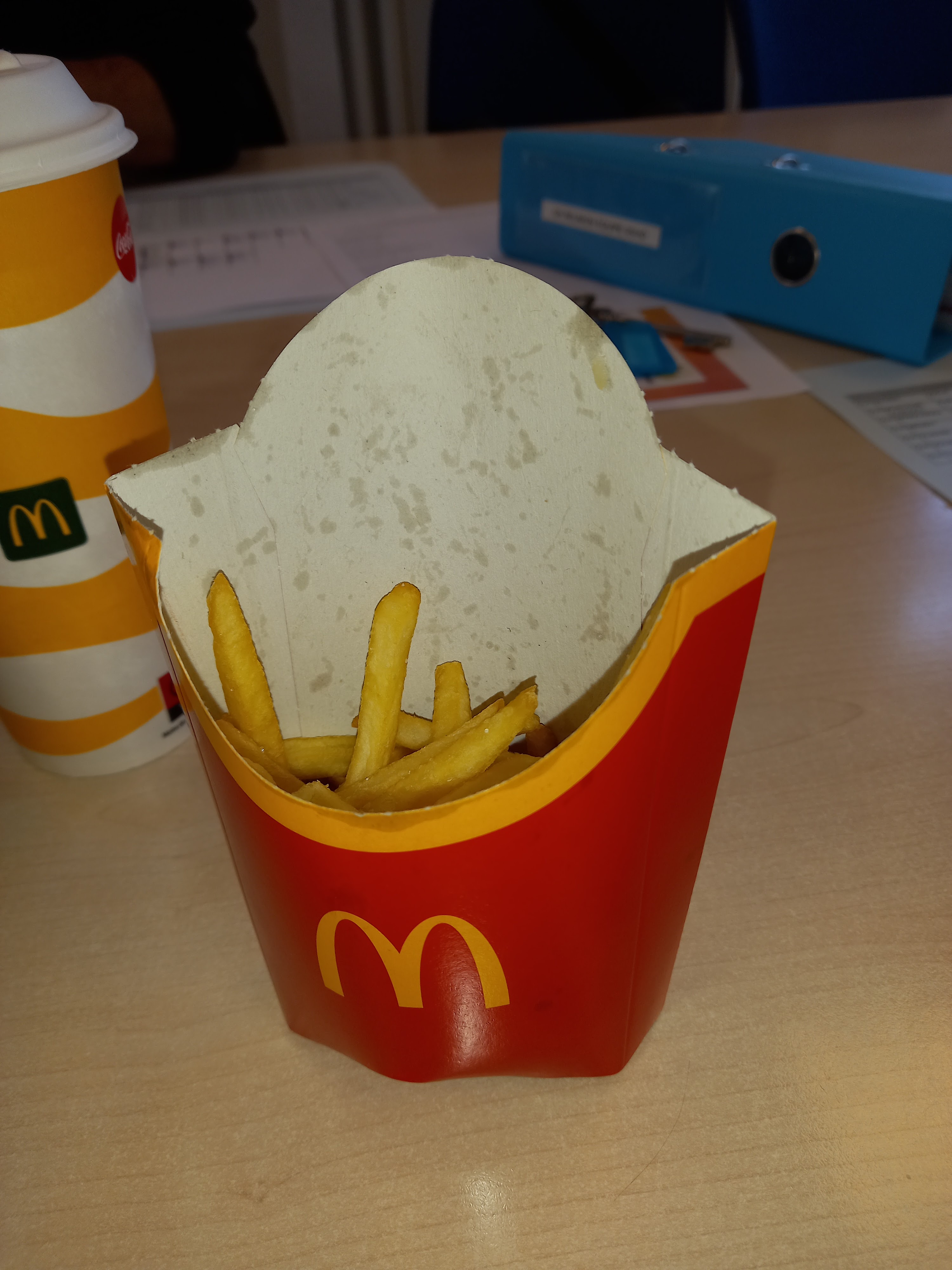 Portion de frites au rabais ! Longue attente au drive et le prix n'en parlons même pas . Bonjour Second commentaires concernant la quantité dans les menus a emporter en 2023 je vois que ça n'a pas changé. Même si l'inflation est bien présente il ya de de l'abus sur les quantités donné au clients ! La prochaine fois je n'hésiterais pas à réclamer au comptoir.