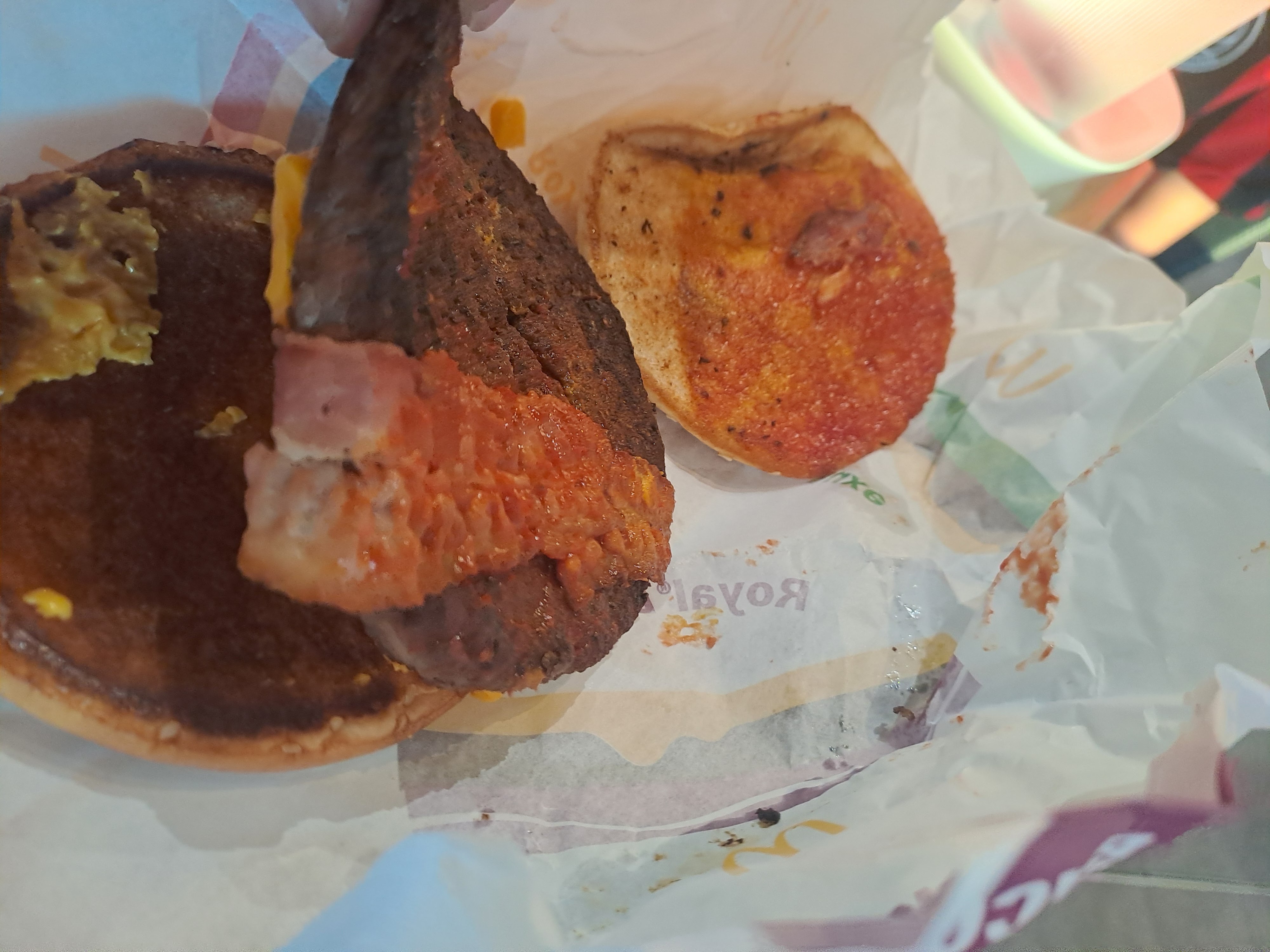 Après avoir commandé un royal bacon, on me sert le pain une tranche de bacon le fromage. Suite à la réclamation on me dit que c est normal. Je contacterai le service client pour ce vol manifeste, qui, pour le manager et la serveuse est normal de ne pas obtenir ce que l on voit sur la photo. !!!! Ne connaisse même pas leur menu et osent traiter votre réclamation.