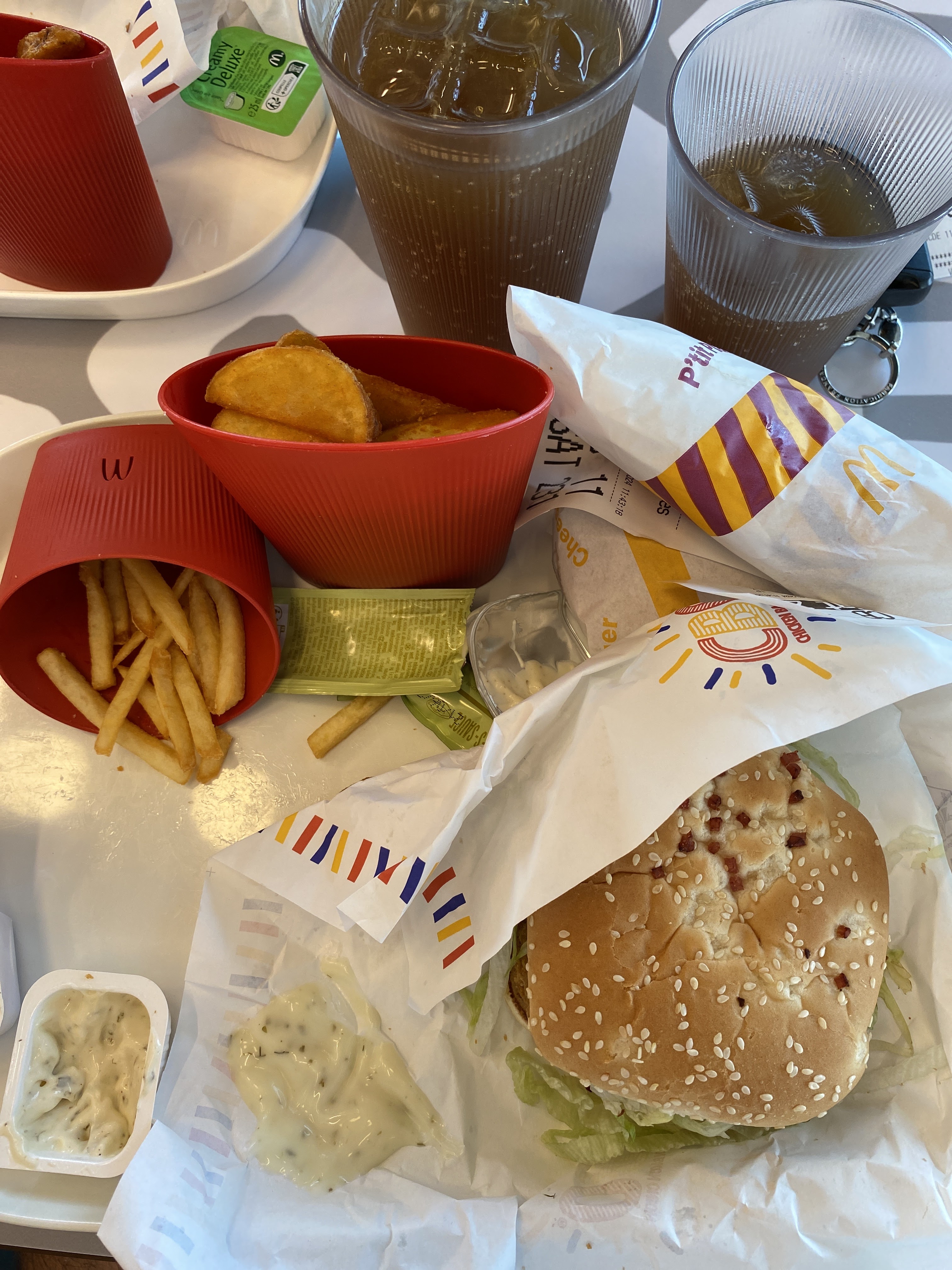 Repas livré en kit, il faut aller chercher chacun de ses éléments du happy meal 1 par 1 (après 20min d'attente et restaurant loin d'être plein). Au moins ça fait faire du sport. Mais pour la distance parcouru j'aurais pu aller à BK, ça aurait été meilleur et moins cher mdrrr. À prendre avec humour mais pas trop.