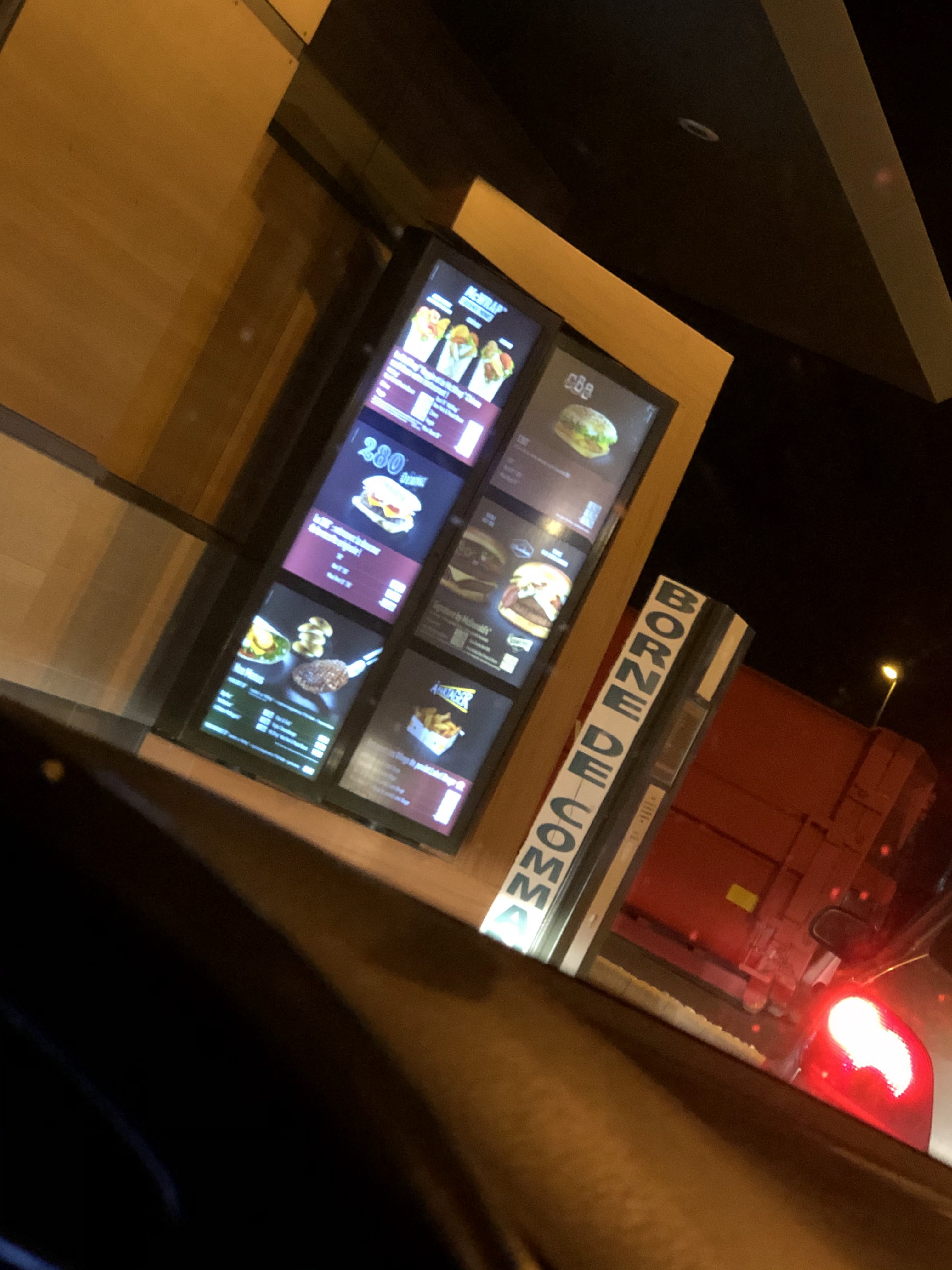 Très fâchée: service au drive a duré plus de 35 minutes, il n'y avait pas de glace ( comme d'habitude), amabilité du niveau d'une prison et pour couronner le tout, les produits ne devaient pas être très frais, la digestion fut compliqué. Vraiment fâchée. J'avais hésité à y retourner...J'aurai dû m'abstenir.