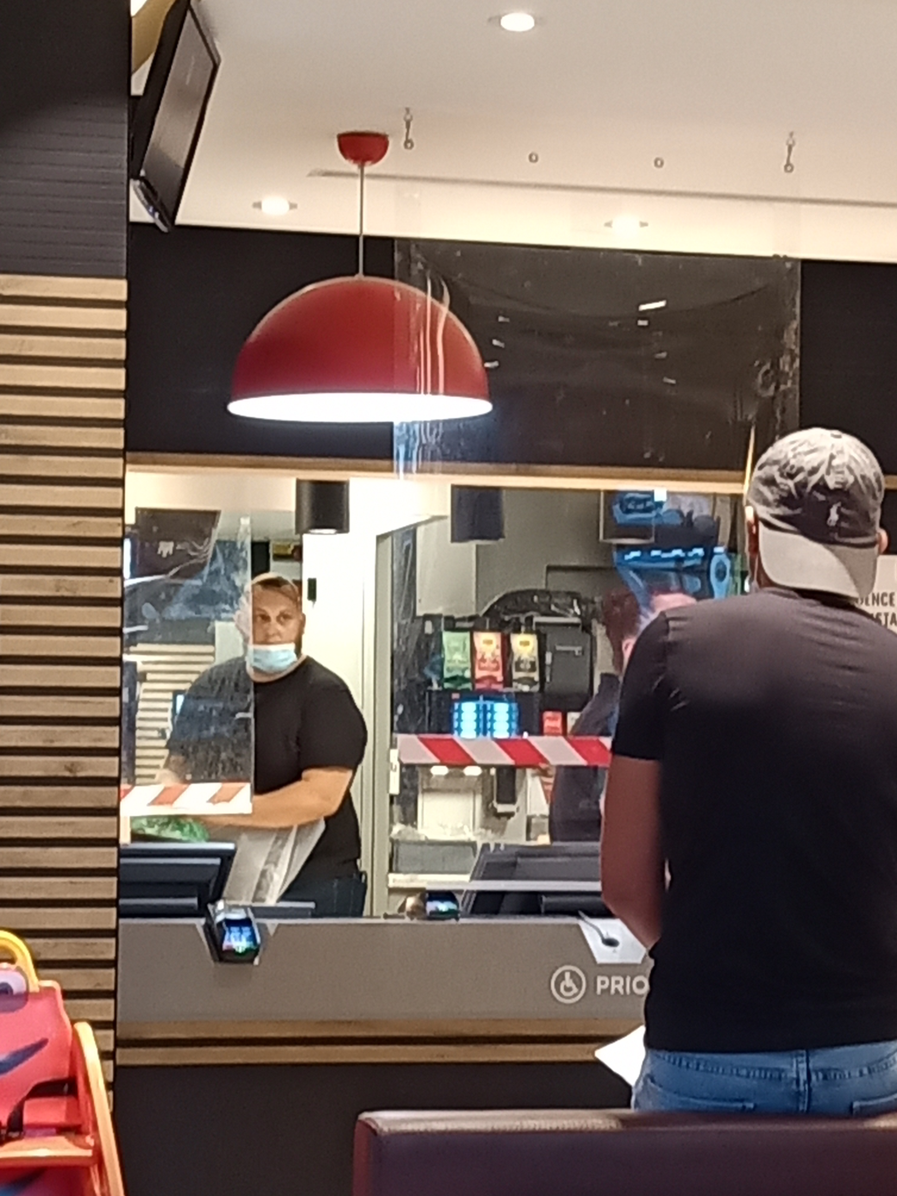 Pas de filet pour les cheveux en cuisine, masque sous le nez y compris le manager, grattage de nez pour l'équipier à l'initiation, 30 min d'attente, erreur de commande.. Oui oui tout ça le même jour