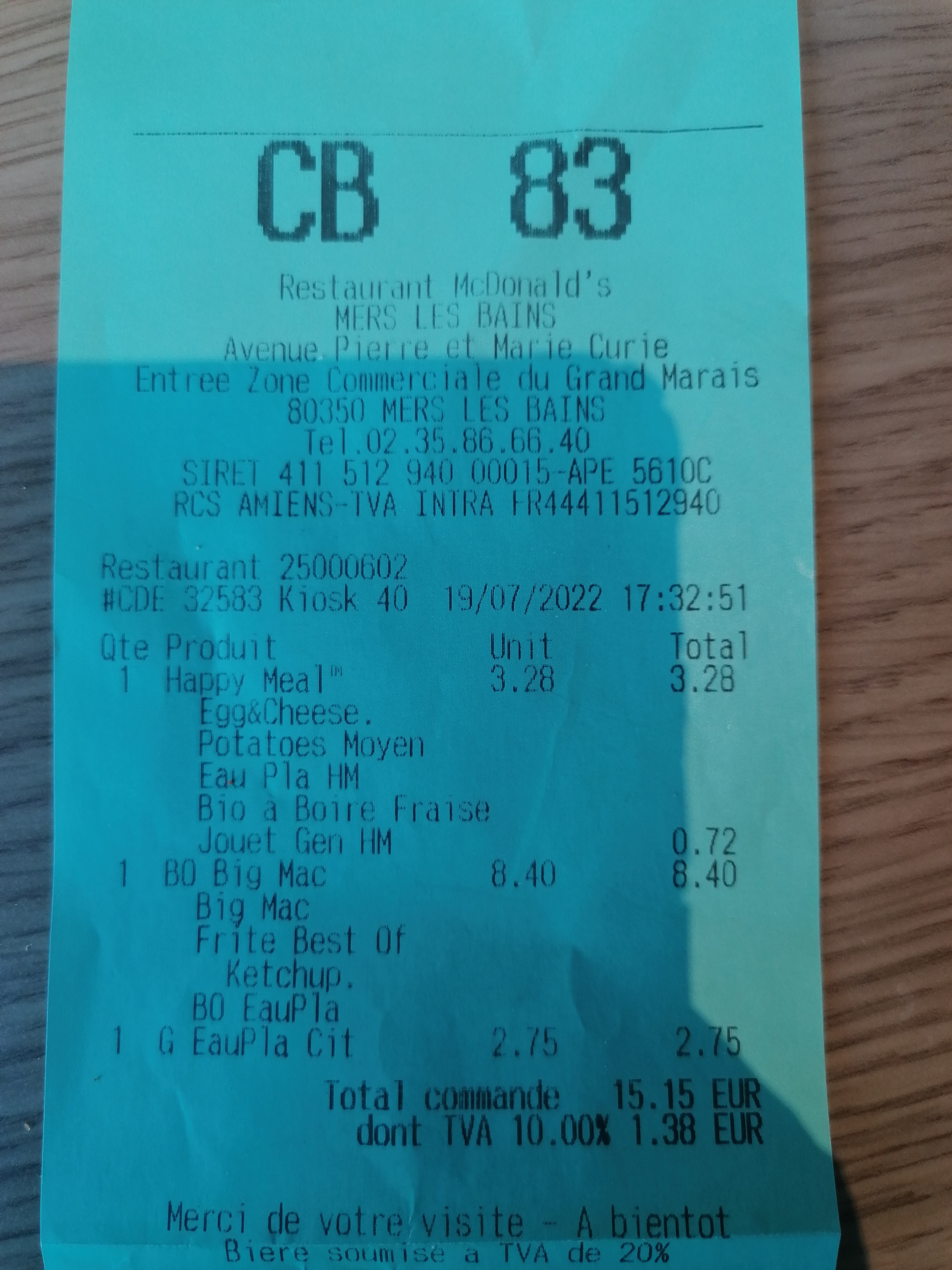 J ai commande deux menus, deux sandwiches et un happy meal. J ai demandé à changer les frites qui étaient immangeables, celles qui les ont remplacées étaient encore pire. Un sandwich sur 3 était froid. Le personnel crie de la cuisine pour annoncer les commandes...une vraie poissonnerie, nous avons attendu 15 minutes notre commande passée sur une borne sans chevalet.... les chevalets (imprimés et plastifiés) étaient dans un sac en papier ...je suis très déçue... la table était dégoûtante ... plus de 26 euros pour ça ..expérience que je ne renouvelerai pas. Je ne recommande pas !