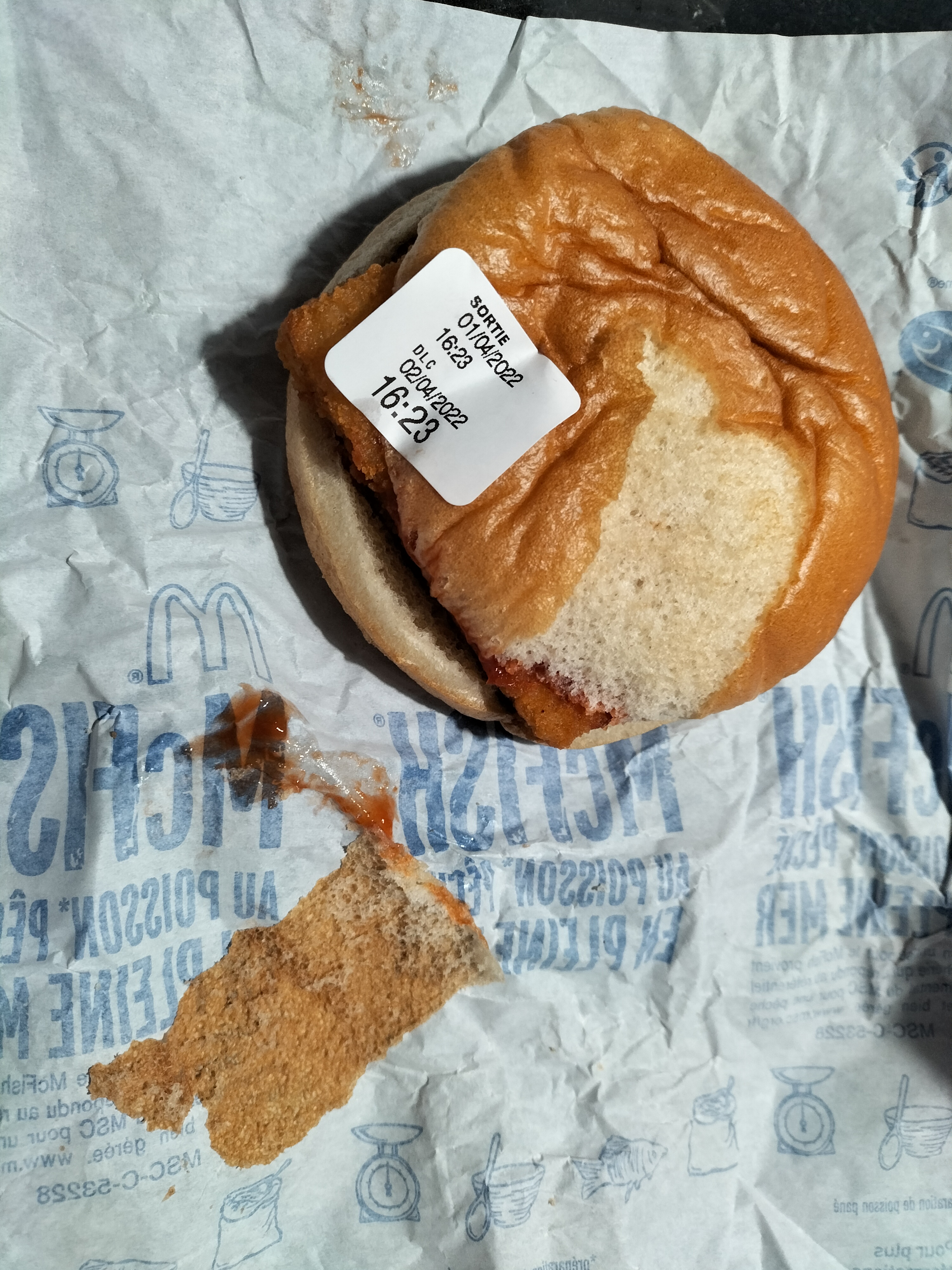 Sans déconner vous rentrer de soirée ou d'une journée sans envie ? Mon filet au fish mal mis je retrouve le pains à la place du filet de poisson faut ce poser des questions la.. ? La moitié de la commande a été prise en compte il me manque les glaces pour les enfant ainsi que la boite de 9 de nuggets, vos employer joue au coin jeux Ronald Macdonald ou en cuisine ? Inadmissible.