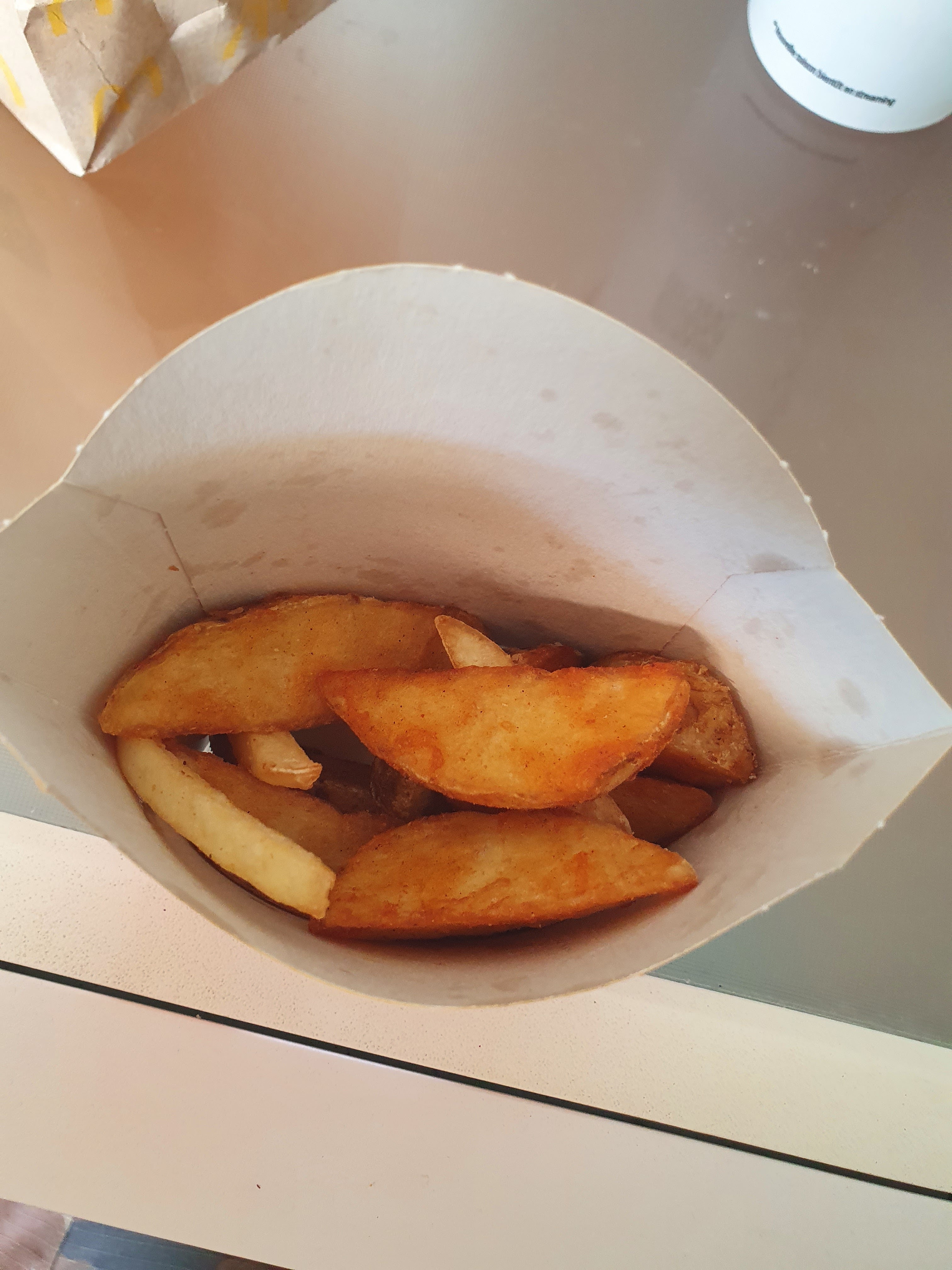 Dès qu'il y a un peu de monde cela se ressent, soit sur l'attente soit sur la cuisine. Aujourd'hui c'est frites et potatoes pas du tout salées et fromage du double cheese pas du tout fondu et froid 😬