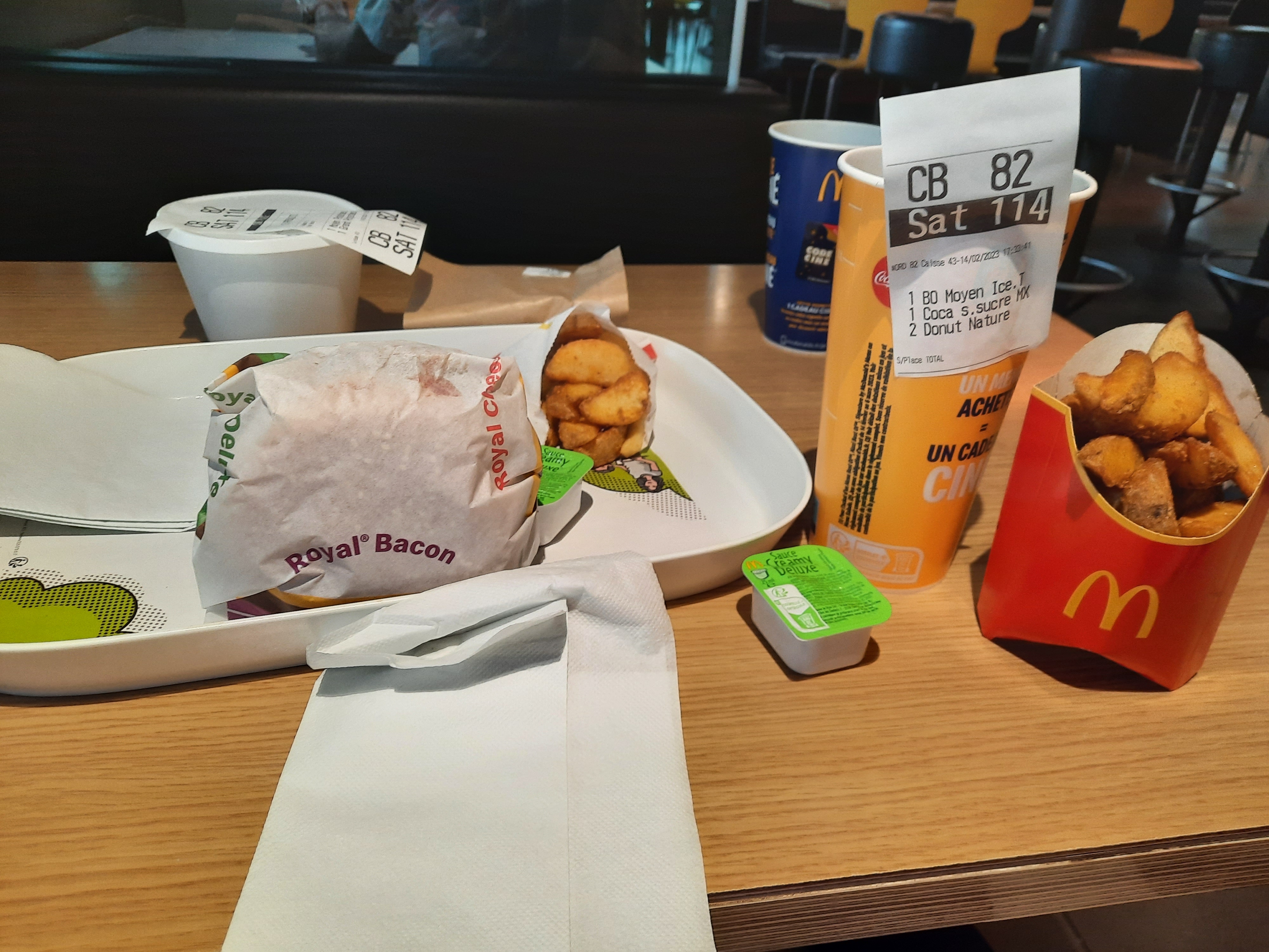 Modification avis : Venue de moins en moins suite à trop d'oublis ou manque de quantité surtout en glaces... Ce qui est dommage c'est de voir une sale avec un sol gras et surtout glissant ! Sans panneau de signalisation MAIS avec des employés que cela amuse beaucoup ! Je passe le plus souvent au drive... Et à savoir que trop de fois il n'y a qu'une personne pour deux bornes drive. Ce qui finit par faire passer les voitures absolument pas dans l'ordre !! J'aurais temps de choses à dire mais on voit bien que mcdo se fait submergé par Bk qui pour le moment gère bien ces points. On peut parler des tarifs.. Même le happy meal n'est plus à 4€. L'inflation... Les menus ne se valent plus.. Désoler c'est trop cher. Et j'avoue que les avantages des points ne se cumulent pas assez vite comme au BK. Cependant légère amélioration à ma dernière visite sur place au niveau de la rapidité. Malheureusement trop d'oublis.. Les serviettes.. Les cuillères... Les sauce POMME FRITES ! Bref.. Bonne continuation.