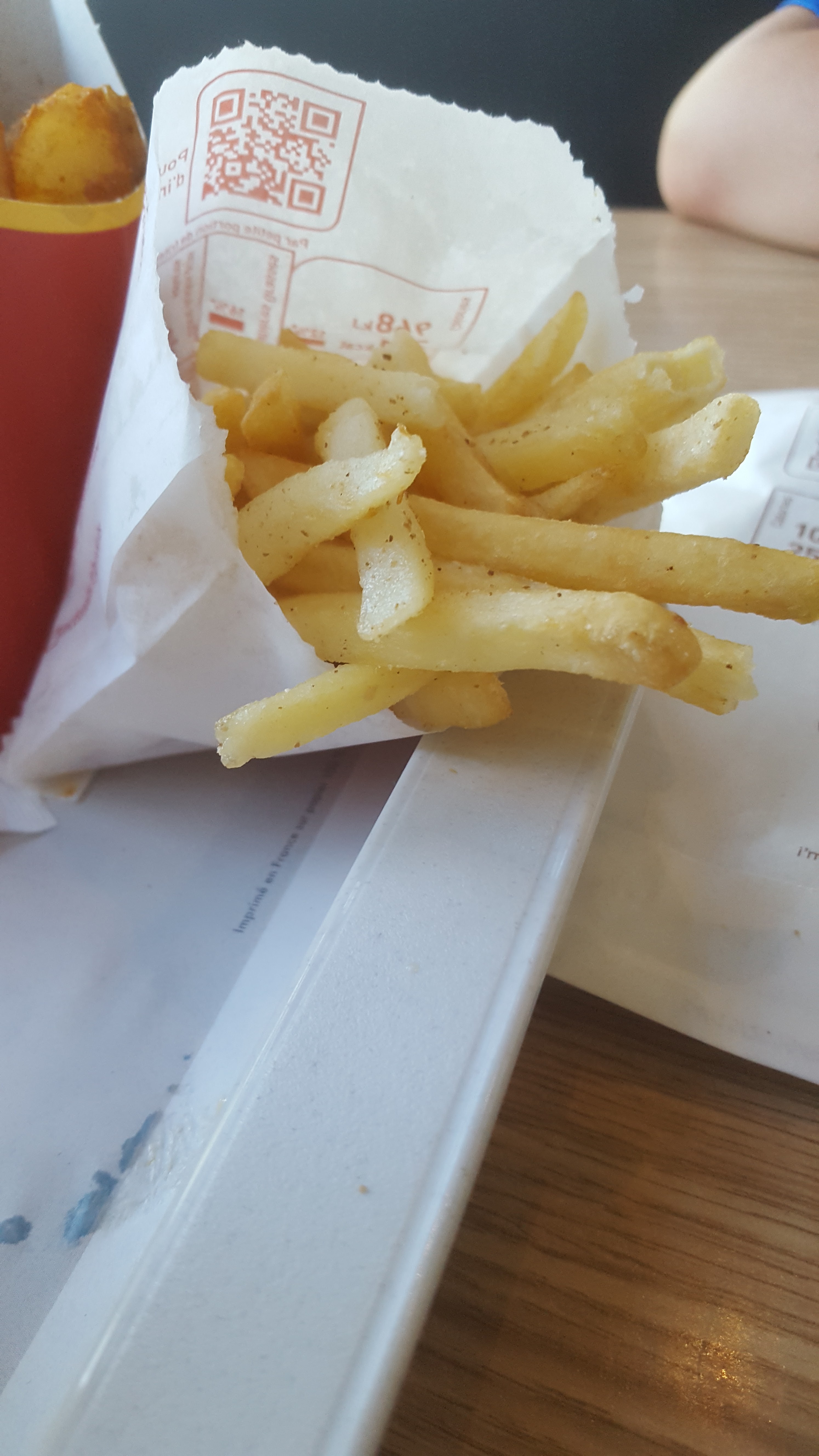 Je n'ai pas compris. Nous allons rarement acheter à ce macdonald mais la dernière fois, en août 2022, c'était vraiment très mauvais : les frites étaient sableuses comme si elles étaient réchauffées une seconde fois. La galce pour ma fille était liquide dès l'achat. Ma femme a eu mal au ventre le soir même et ma fille a vomi deux jours après. Je ne sais pas s'ils ont essayé d'économiser sur des produits périmés mais le résultat est qu'on y retourna plus du tout. Vraiment dommage, il est pourtant très bien situé par rapport à chez nous...