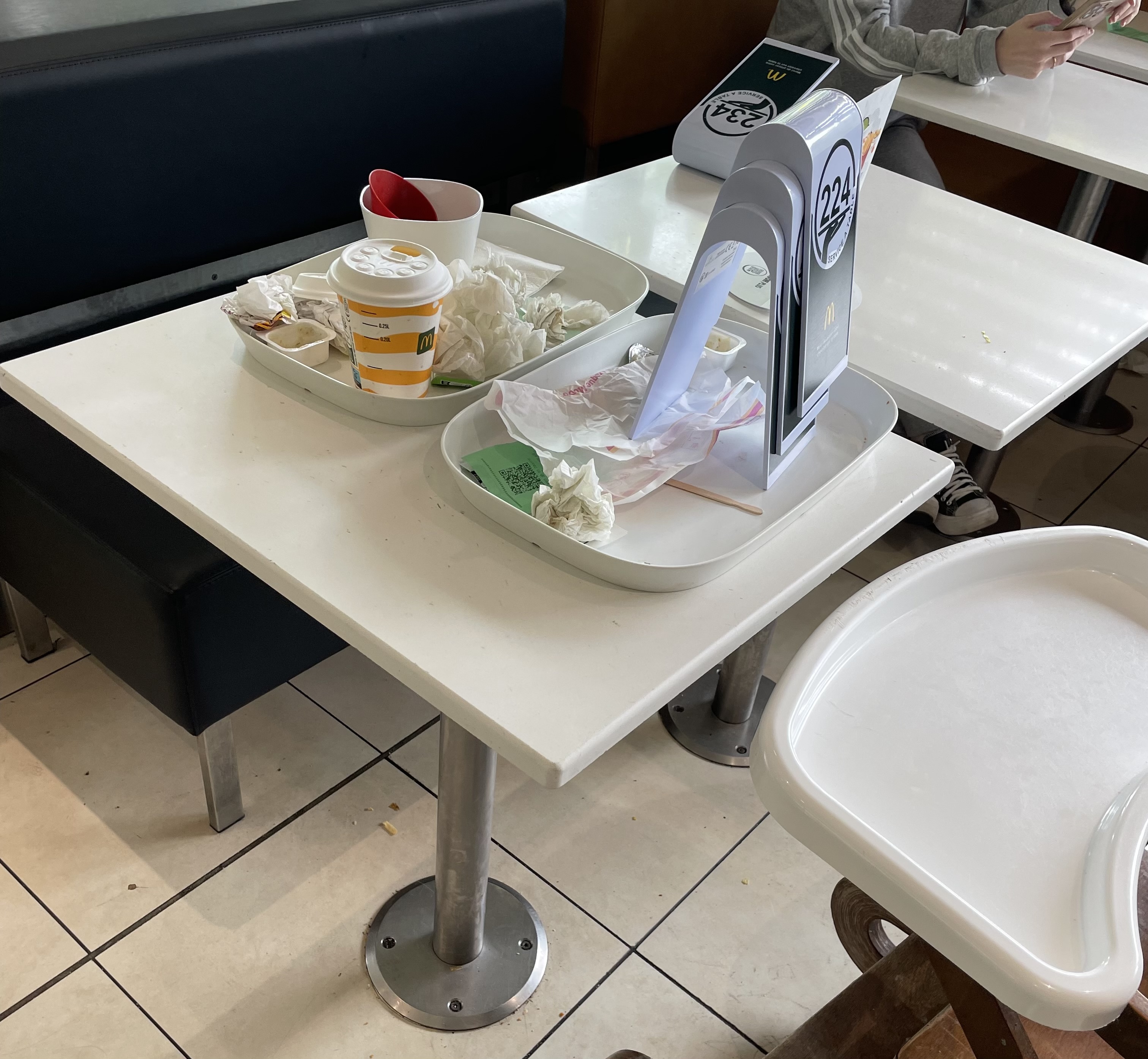 Se restaurant est à banir c'est très très sale au sol une honte les wc était inaccessible du à un souci dans la journée les seules disponibles ce sont les wc handicapés mais impossible d'y mettre un pied tellement il y avait de l'urine par terre une honte ce Mac do je ne suis pas prête d'y retourner