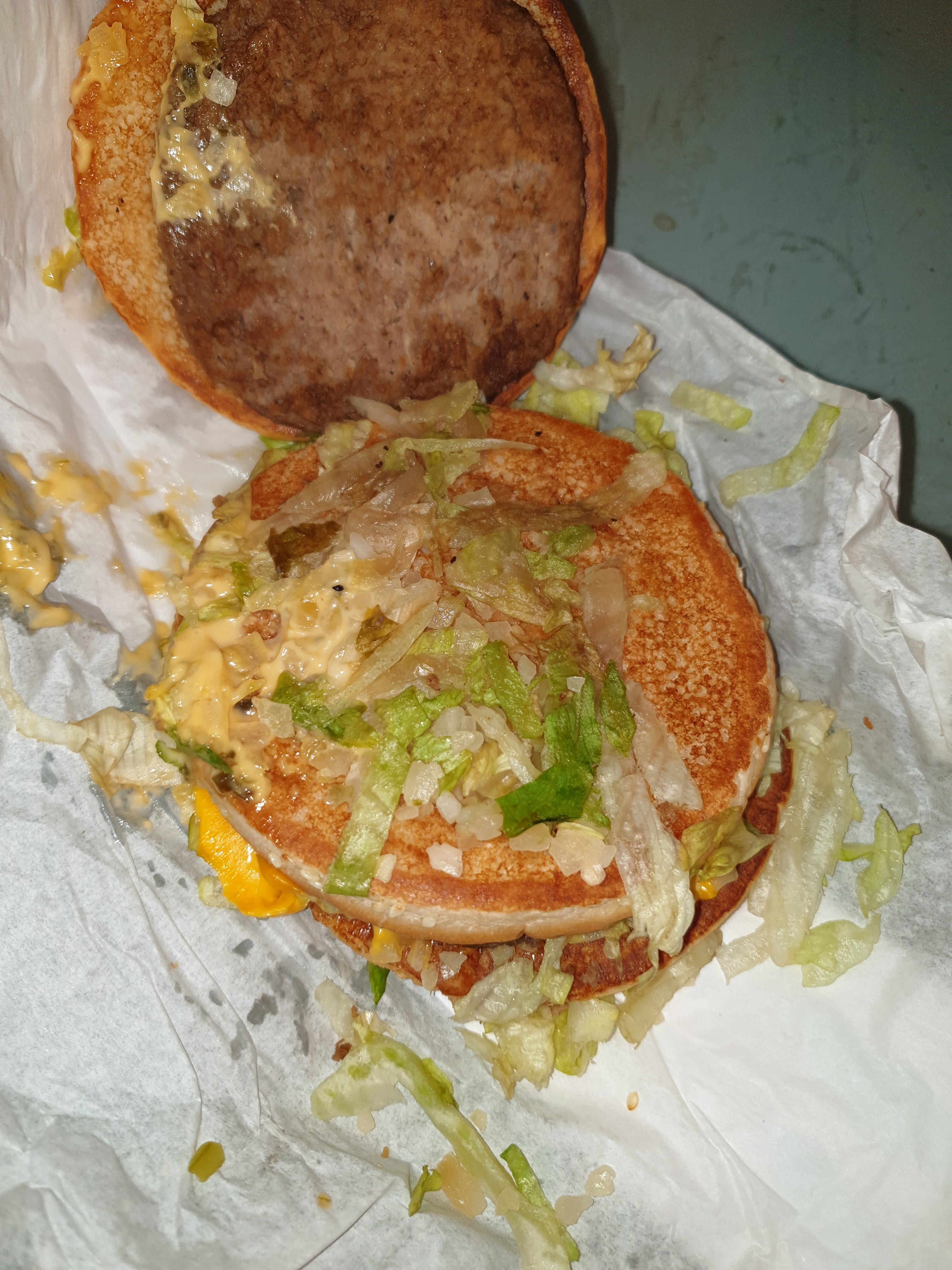 Attente interminable pour un Macdonald...double big tasty immangeable ça glisse c'est galère..
