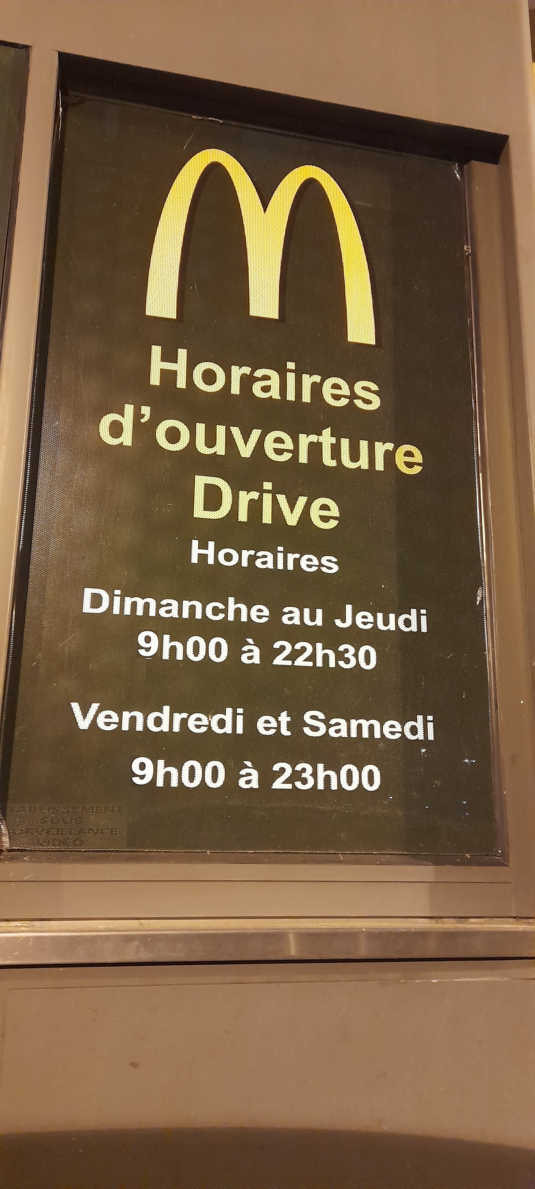 Commande en drive oui il faut prendre sont temps 15 minutes pour trois voitures à 22h00. Très longtemps sans allez chez mc Donald les prix chère 11€ pour un menu, pas mal.