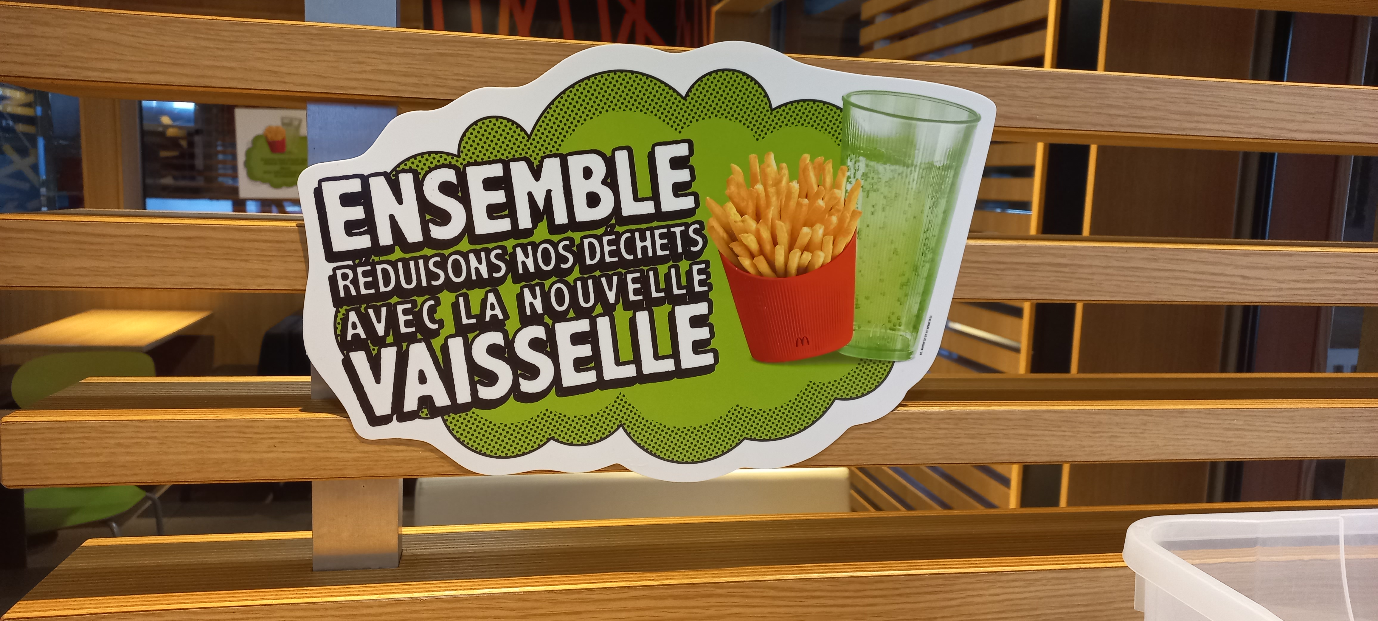 Mais où est la vaisselle réutilisable ? Greenwashing ? Publicité mensongère ?