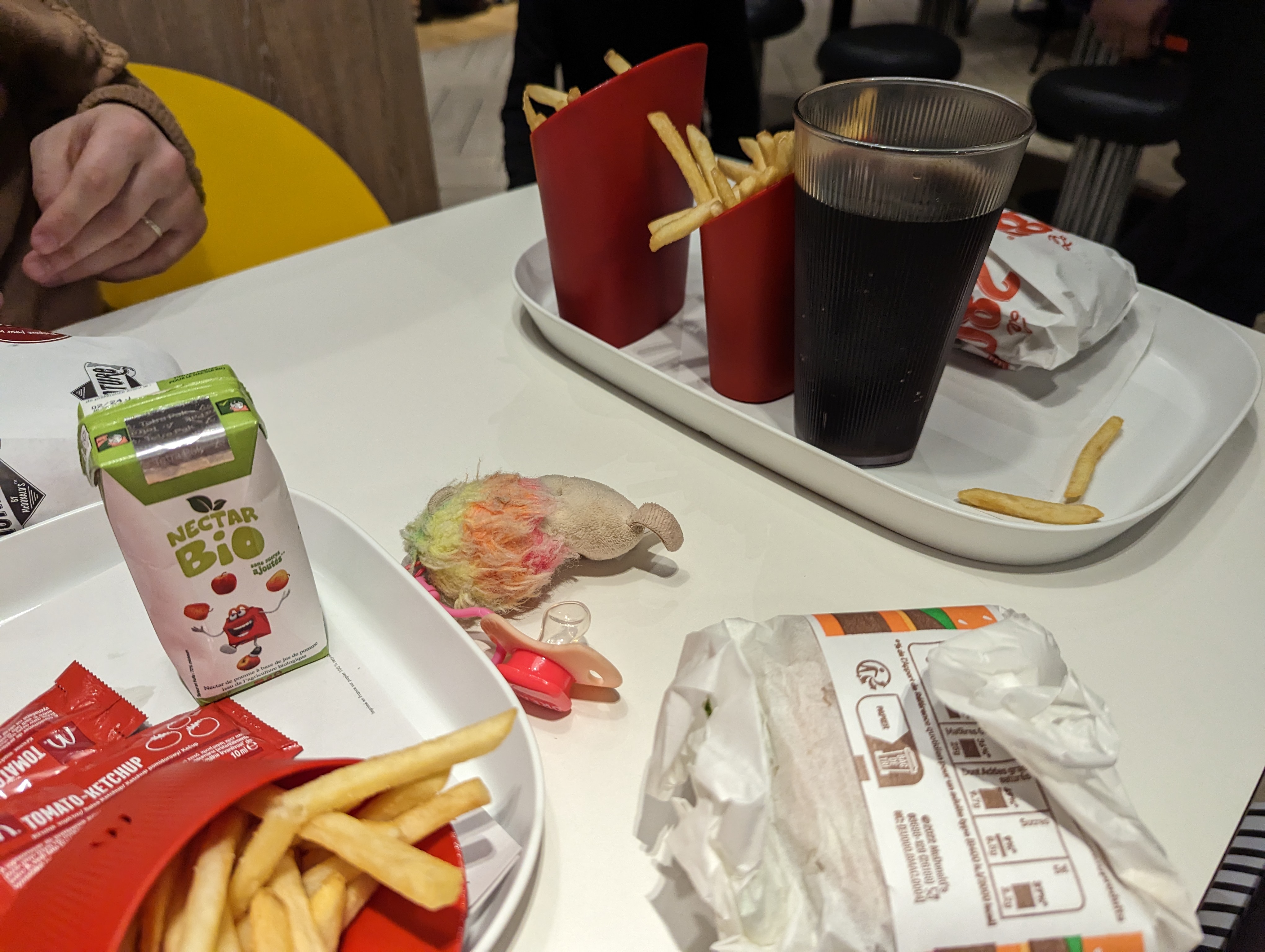 40 minutes d'attente pour manger sur place en ayant demandé 2 fois si on nous avait pas oublié et servi avec des erreurs, double cheese bacon sans bacon, 2 jouets au lieu d'un livre et un jouets, 2 ketchup pour 3....enfin première visite et dernière