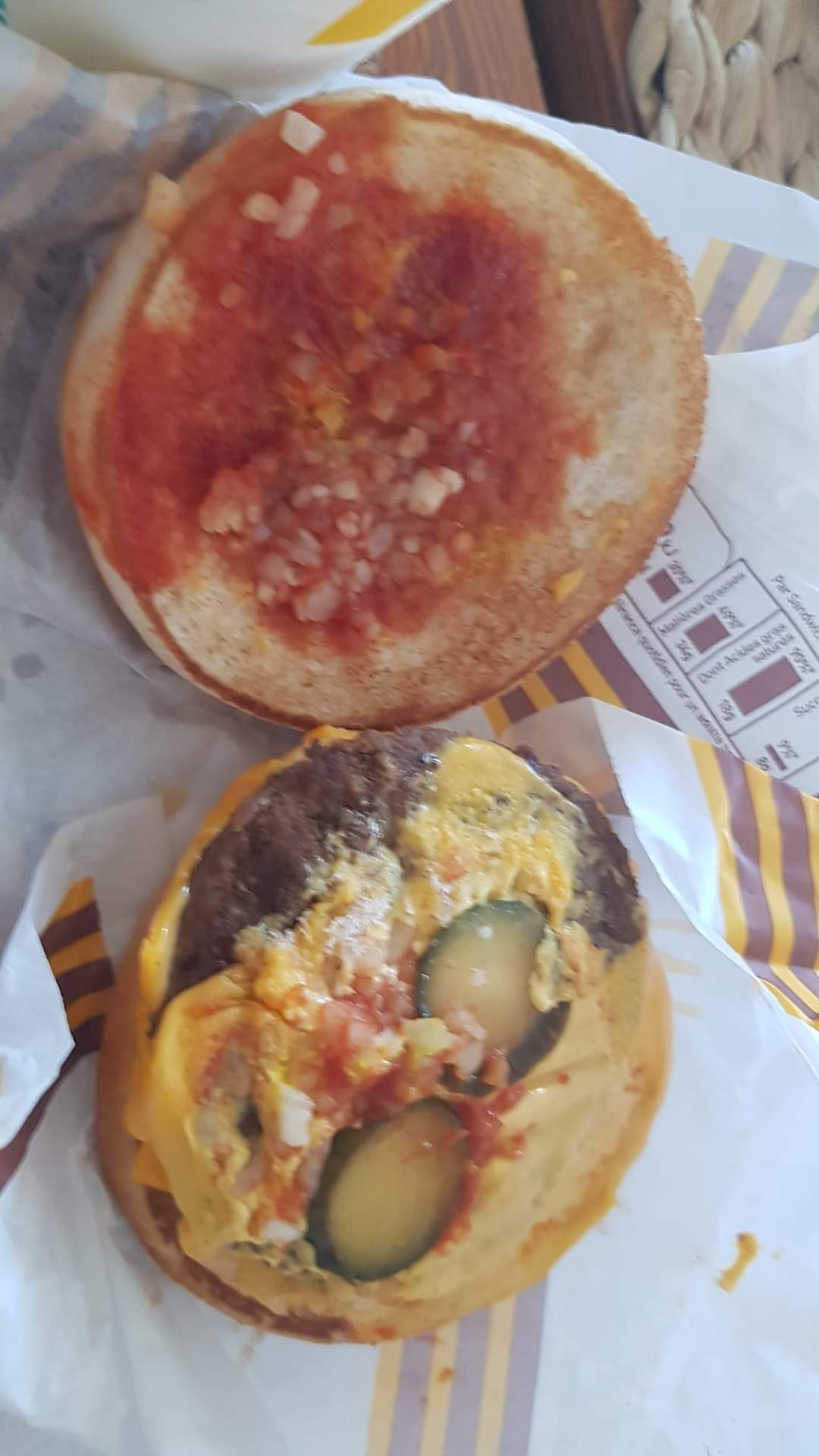 Au drive, l'attente est un peu longue et une fois la serveuse nous a dit de nous garer sur le parking qu'elle nous amènerait notre repas pour faire avancer la file d'attente des voitures. Pas sympa la chose et pas commerciale ! de la petite fenêtre vu trop de parlottes, mais je comprends que la formation des jeunes n'est pas évidente et pas facile pour certains(nes).