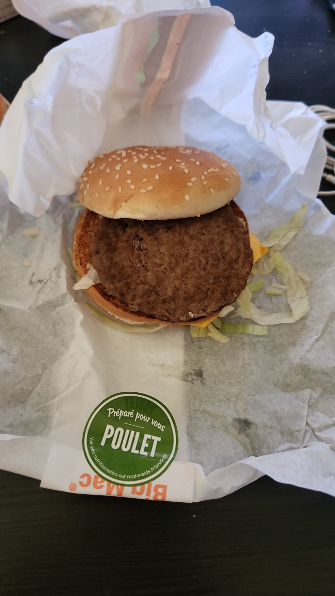 C'est une honte ! big mac sans salade ni sauce . Je croyais qu'ils s'étaient trompés de sandwich. Heureusement que les autres établissements ne copient pas car cela ferait une mauvaise pub à l enseigne ! À voir les photos c'est un big mac de Bain de bretagne.