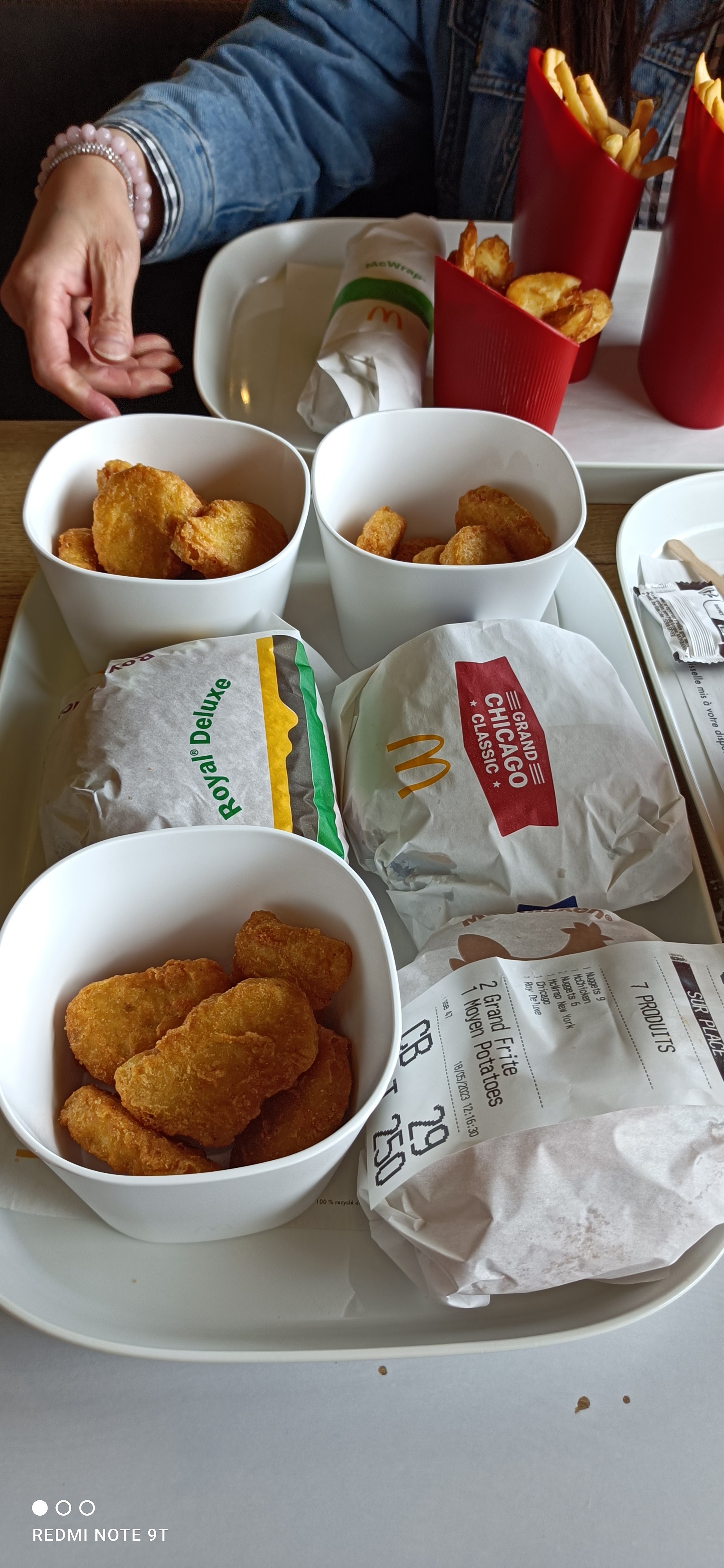 Décidément, grosse déception, aujourd’hui, McDonald ne pouvait plus proposer de menus enfants car ils sont en panne de dessert, il nous propose un sandwich Cheeseburger, une petite frite, une petite boisson pour un peu plus de 8€ Je veux bien, l’inflation est présente, mais passer d’un menu à 4,50 € est monté à 8€ euros soit pratiquement le double sans même de dessert. Donc le double là y a de l’abus. C’est pas du joli. J’ai même dit à la jeune fille, comptez-moi un menu enfant et ne me donnez pas le dessert, nous aurions été facturé 4,50 €, et non, elle n’a pas l’autorisation de nous faire cette proposition. Du coup grosse déception