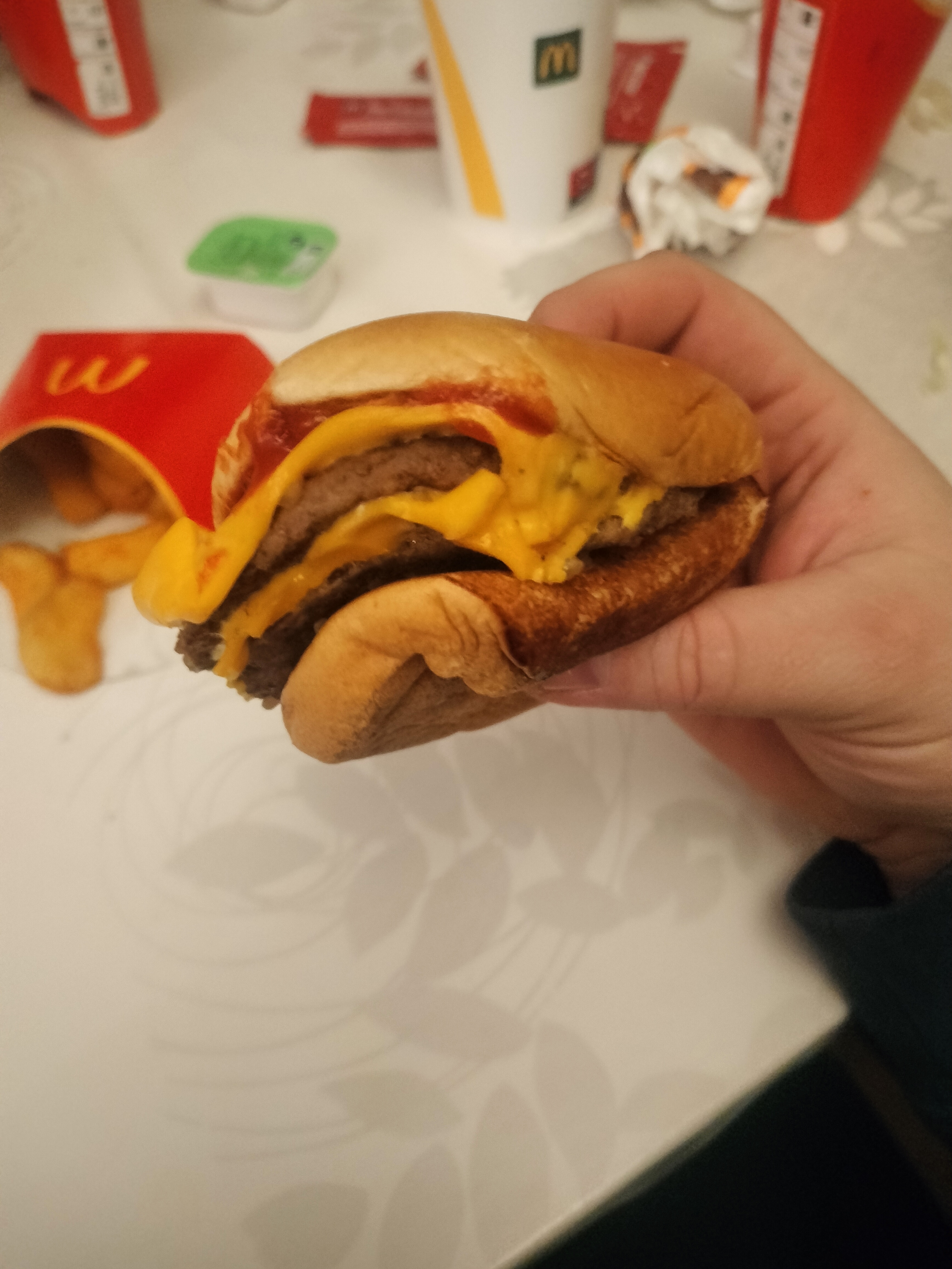 Pas mal mais pourquoi le big tasty fait la taille du couvercle du gobelet ? Il a réduit de moitié !