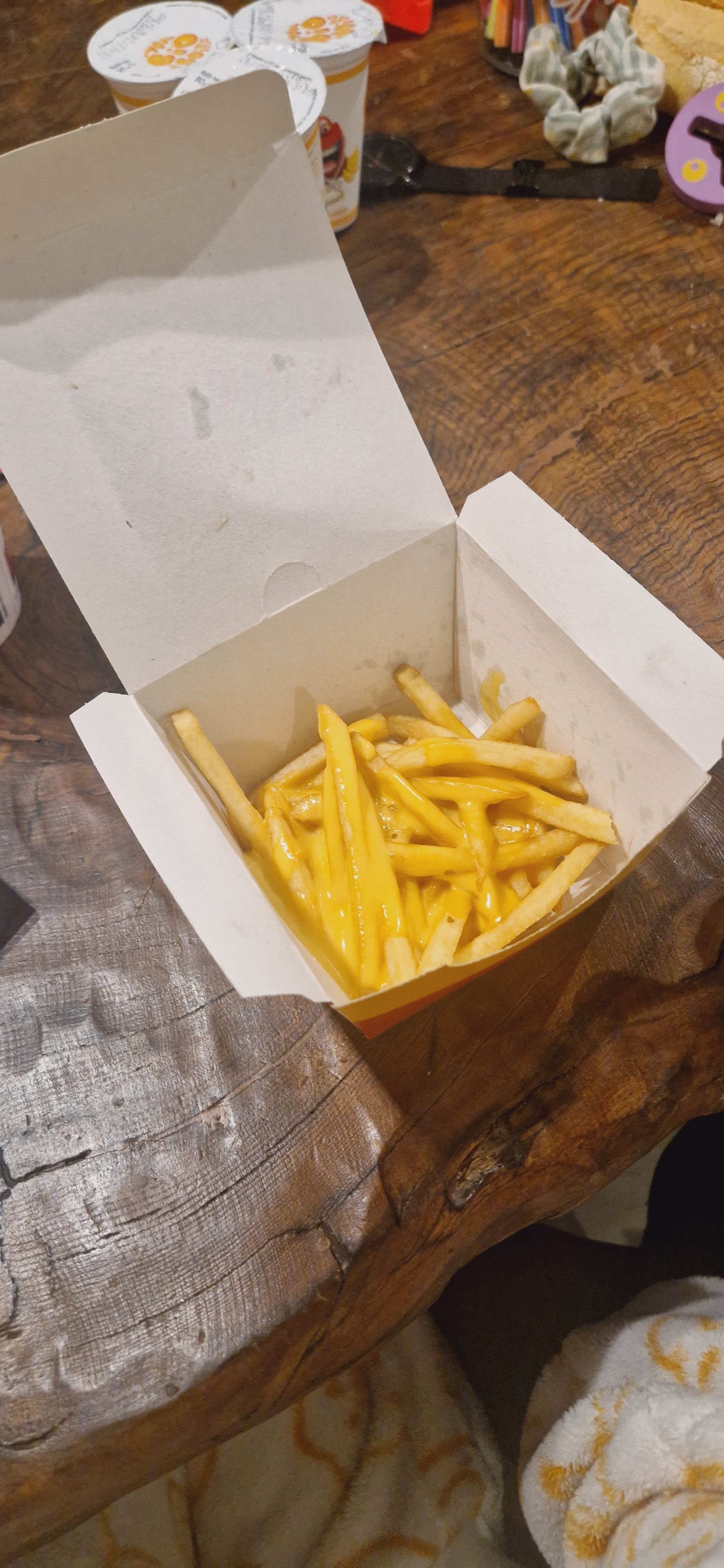 J'ai entendu en prenant ma commande sur la borne une employée a raller pour la commande ESP 30 faite a 16h30 le 23/02/23 car il y avait une boîte de 20 neugets d'après elle c'était la 3eme fois qu'elle en faisant je comprends pas ça réaction pouvons-nous prendre s'que veux ?! Malgré tout bon dans l'ensemble, manque de changement de produit a mon goût.