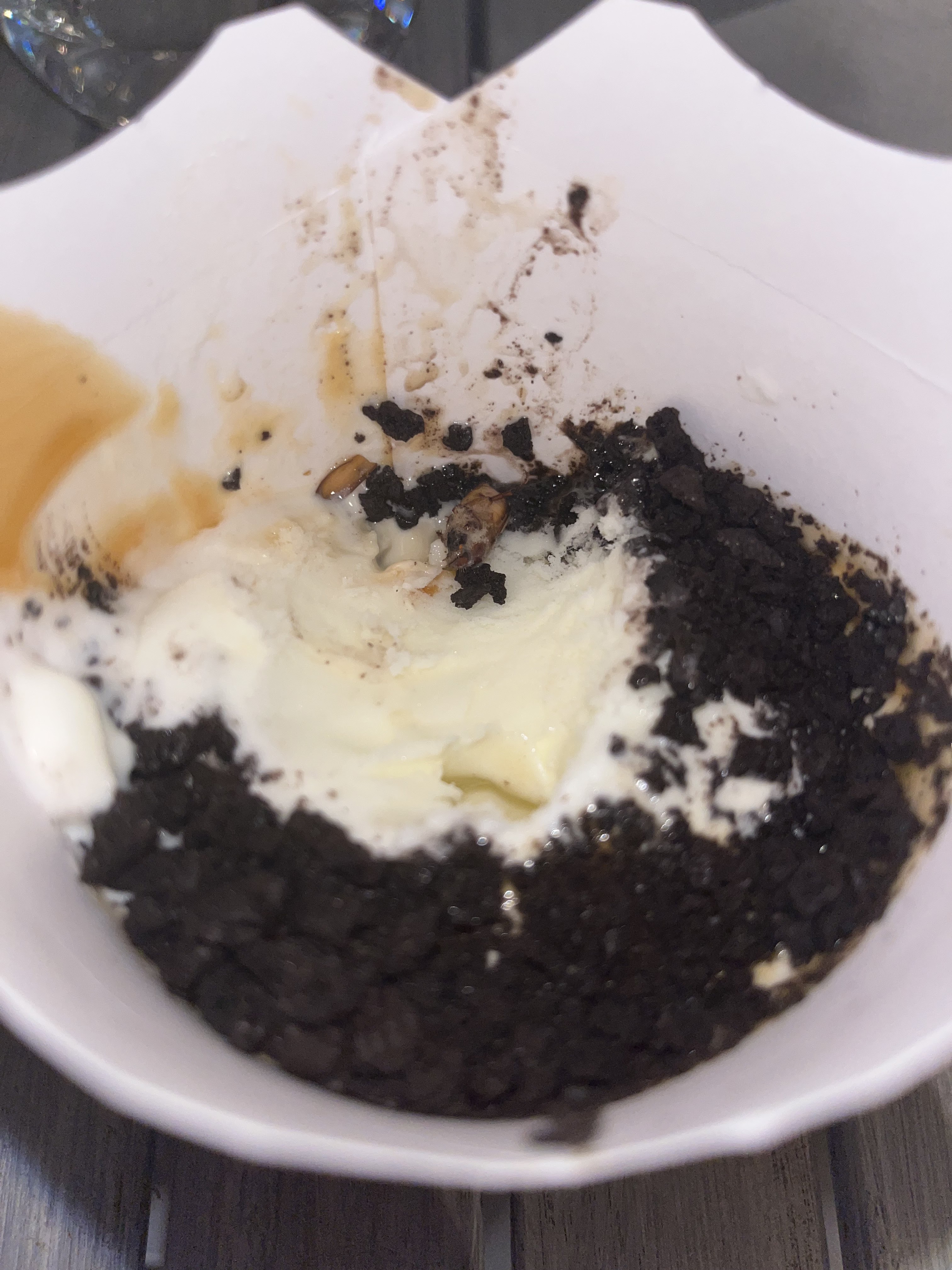 Mc Flurry Oreo sans nappage .... Étrangement leurs Oreo est très clair et a un goût de SPÉCULOOS ! Je sais pas si j'ai été clair ou pas. Tout comme une boîte de six et il y en a CINQUE ! 5 NUGGETS au lieu de SIX ! Ça fait beaucoup non ?