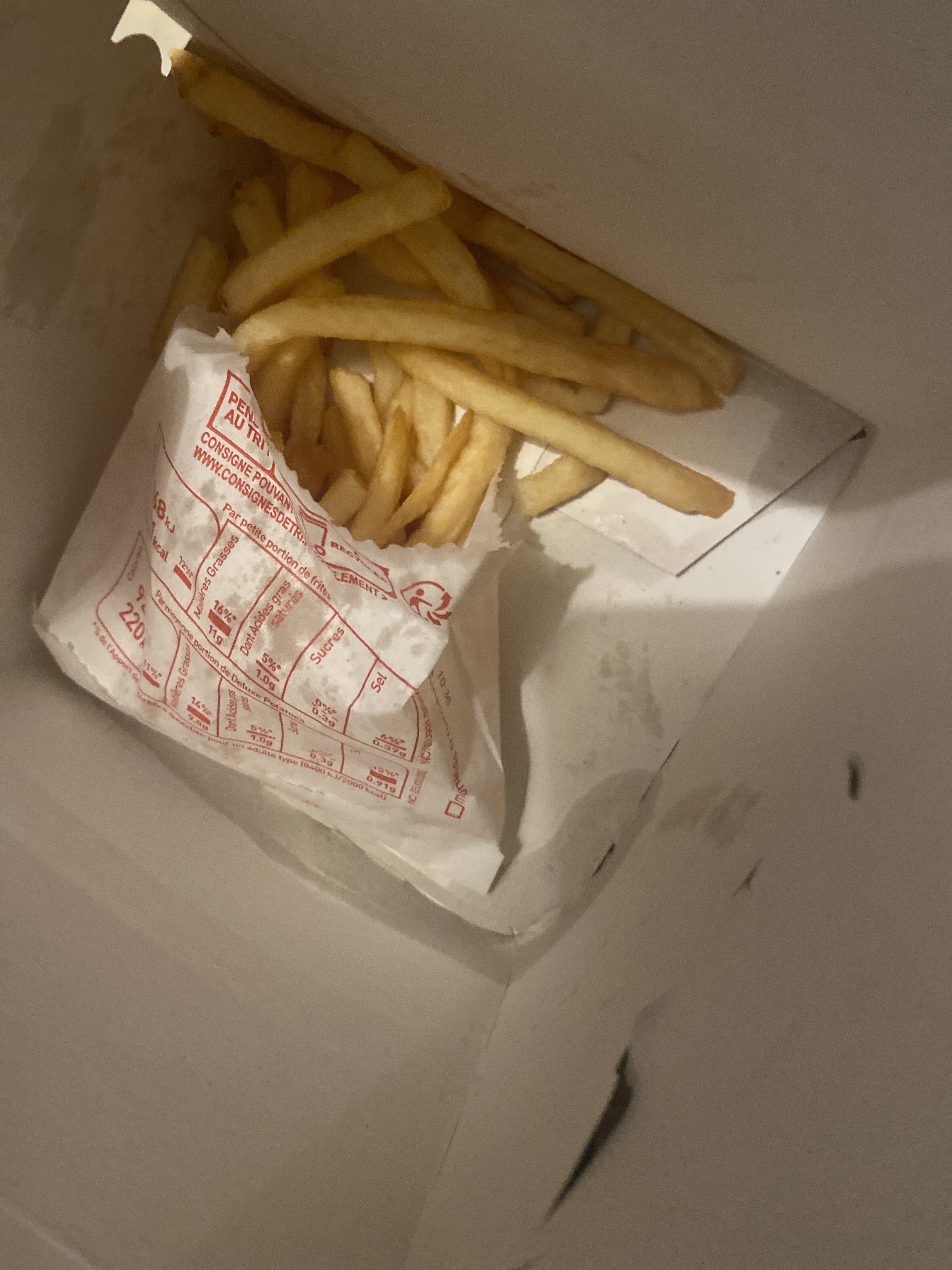 Des frites pas du tout croustillantes a se demander s ils ne les rechauffent pas au micro onde.... froides et molles bref tres decu du mc do etampes