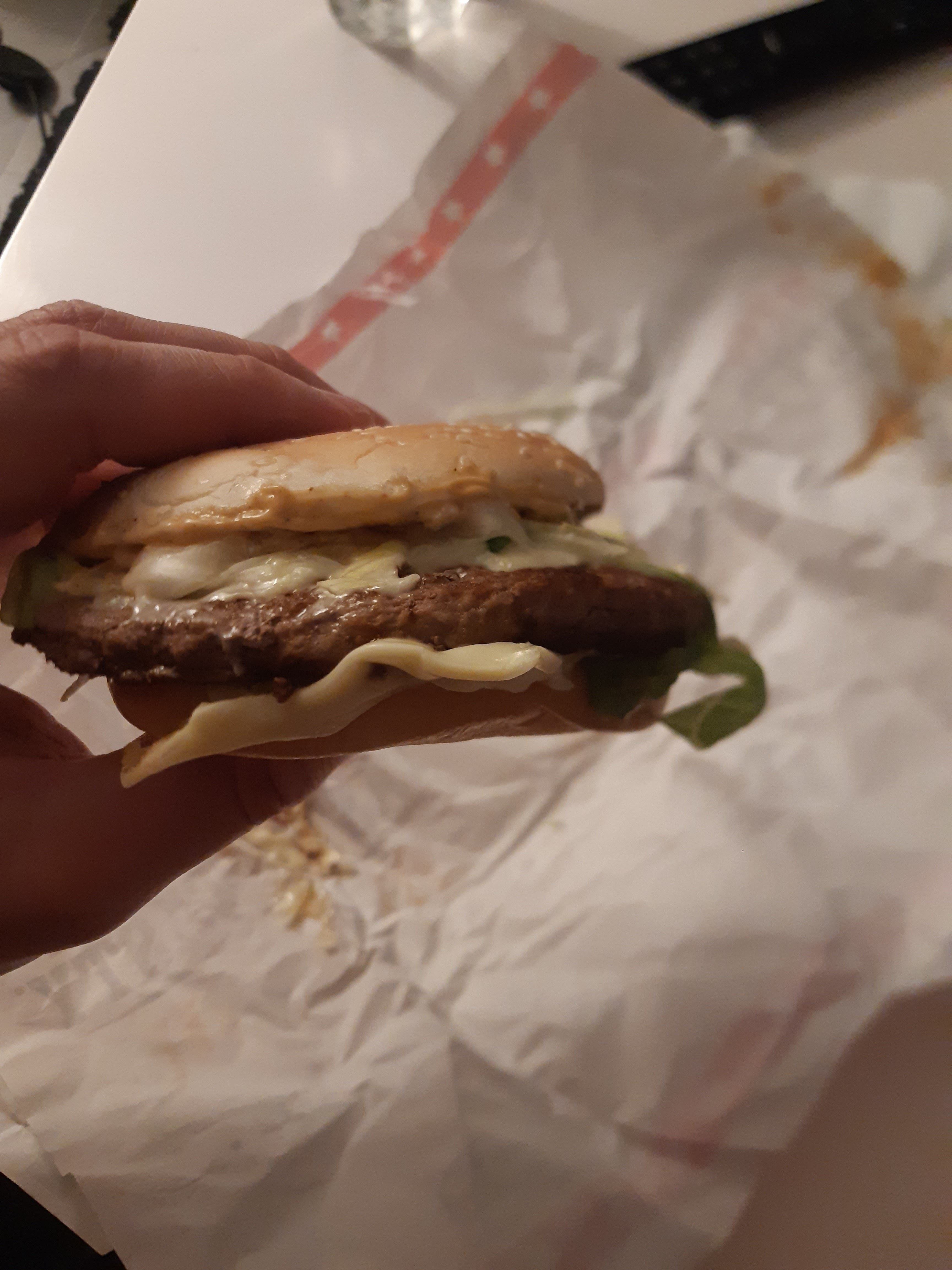 1- qu'est ce que c'est que ça ? 2- j'ai commandé un big tasty DOUBLE viande je ne vois pas ou est le deuxième steak. 3- j'attends le bon pour un menu gratos cordialement. Y en a marre la prochaine fois j'irais a burger King.