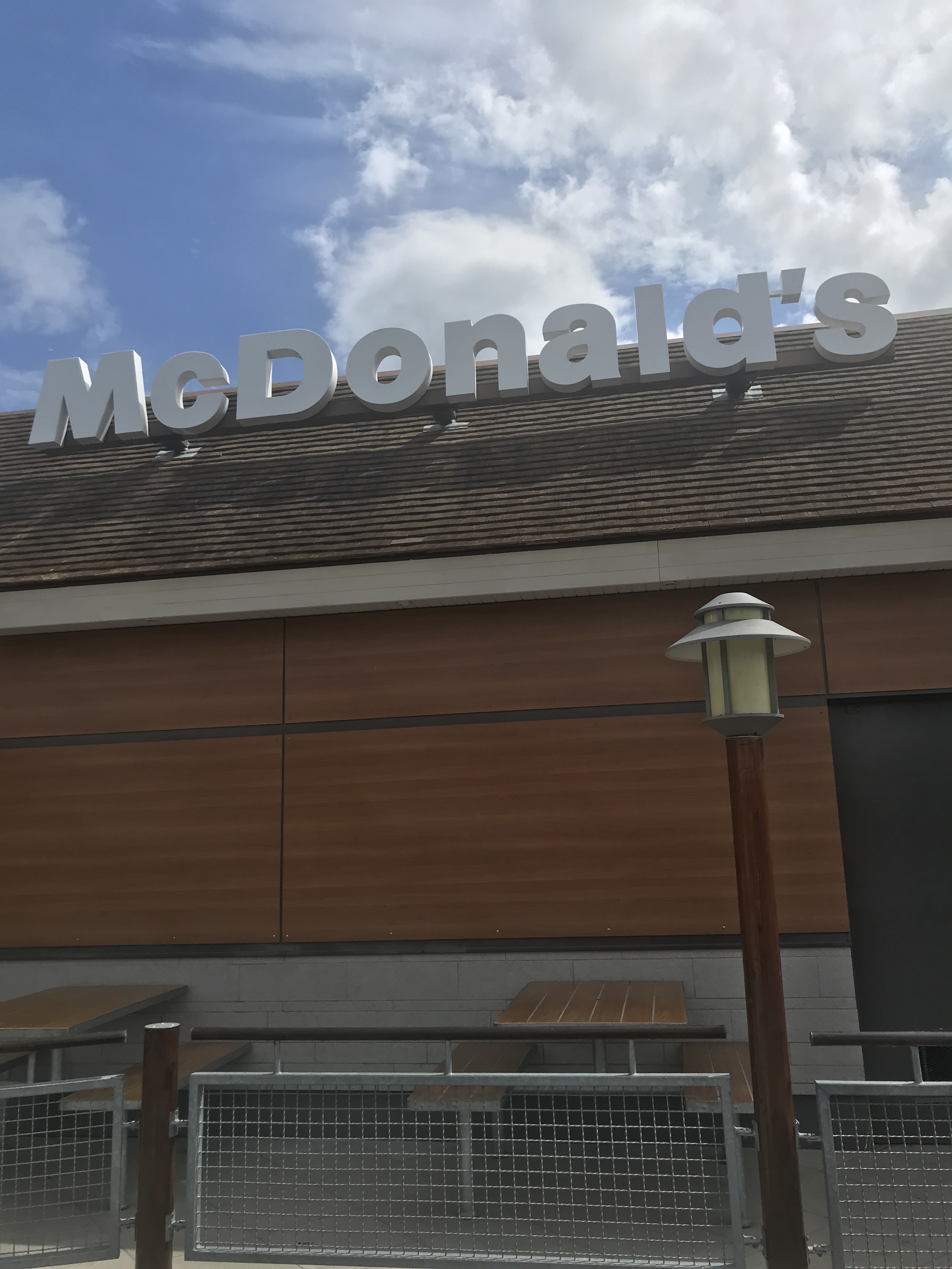 McDonald's devient plus écologique avec de la vaisselle en plastique qui est lavée. Par contre le trie en fin de repas est à revoir, avec un système trop compliqué et de nombreuses erreurs (la vaisselle qui doit être lavée doit être mis dans la seule chose qui ressemble à une poubelle !). On apprécie les grands jeux pour enfants.