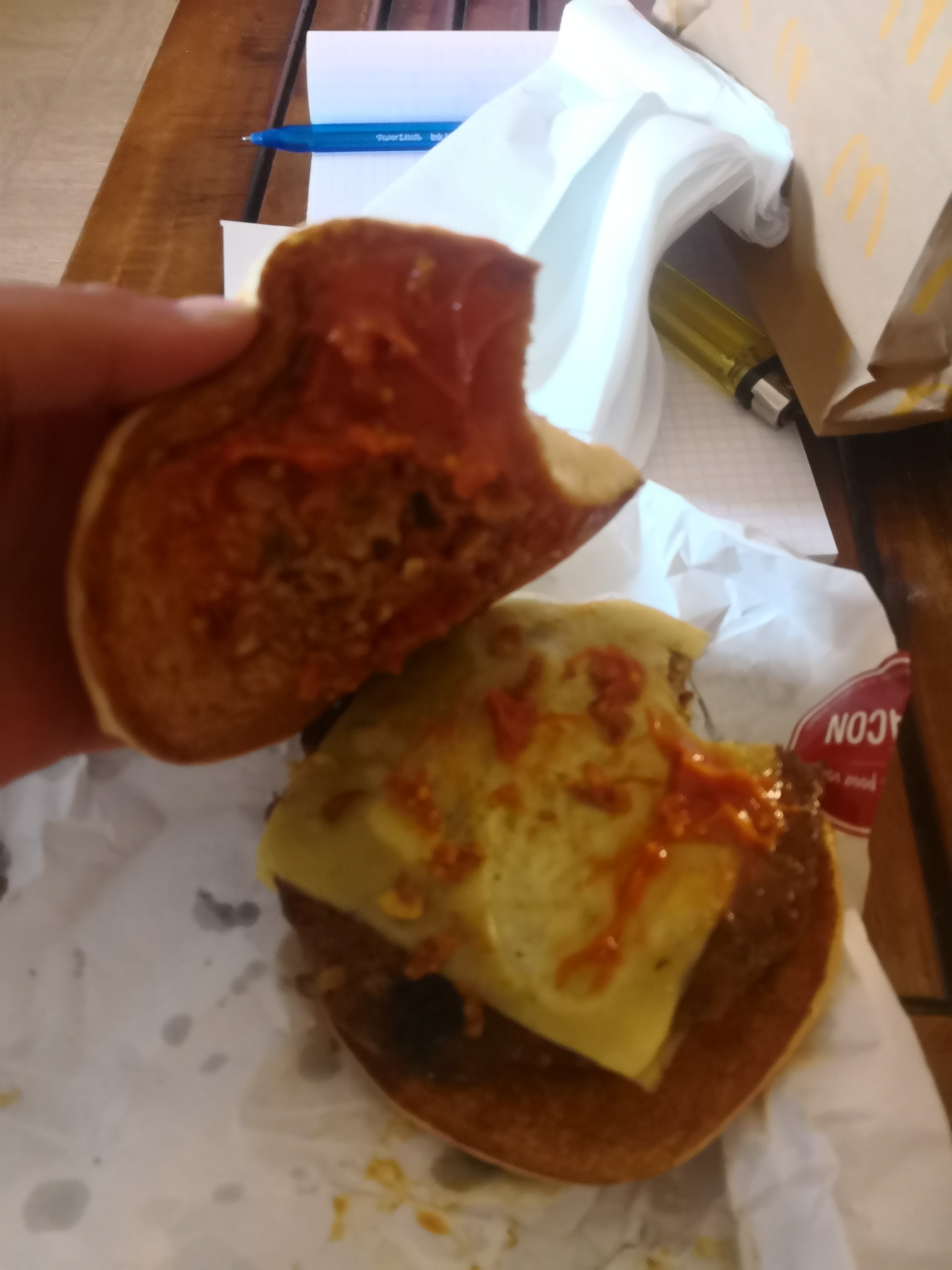 J'ai commande un burger sensée contenir du bacon.... Mais pas de bacon, si pour moi si pour mon ami... Vraiment dessus une nouvelle. Mac do pert vraiment en qualité de service. Vraiment dommage.