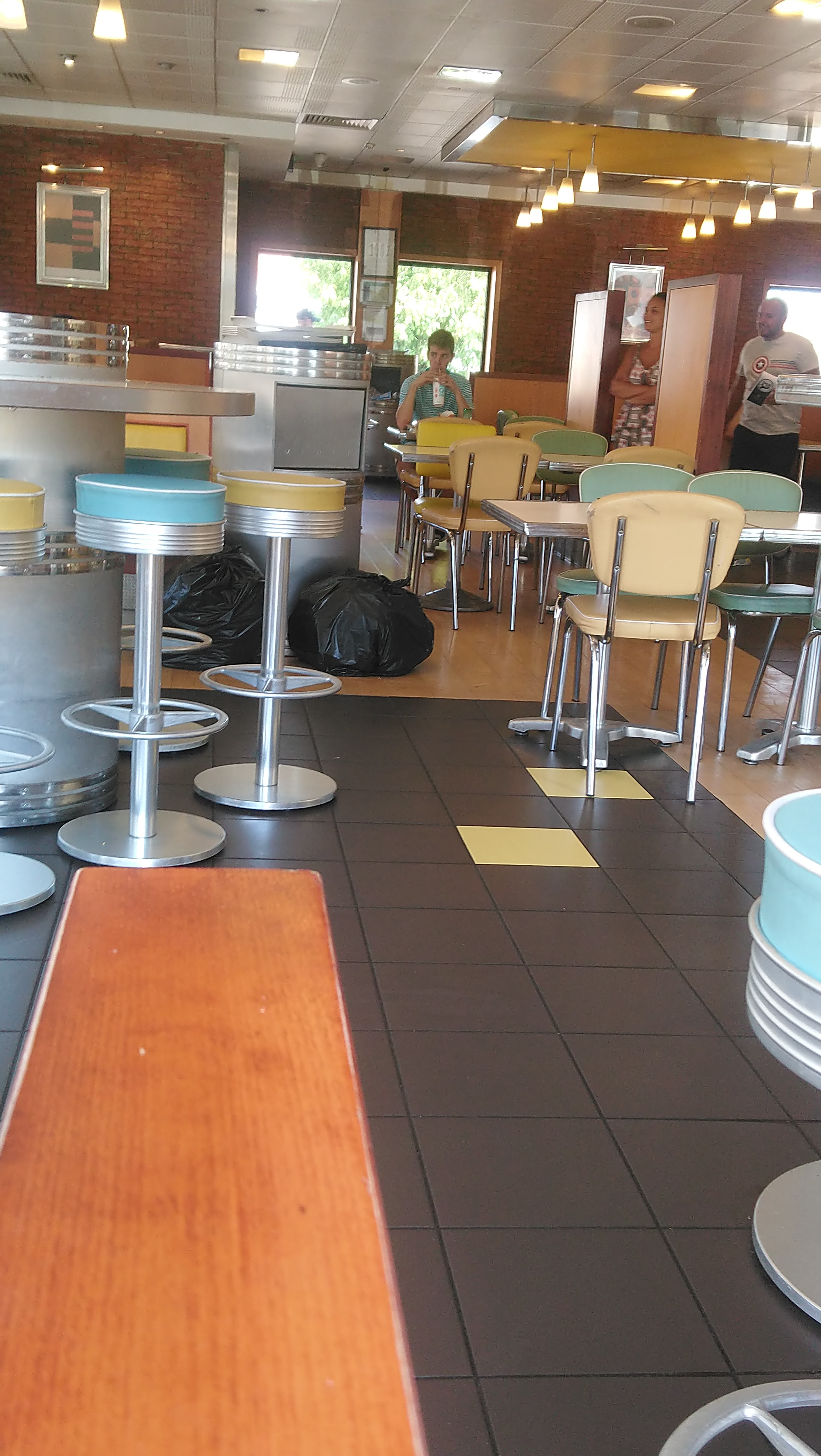 Le resto a de jolies équipements mais c'est tout. Les hamburgers et frites qui arrivent froids après avoir attendu longtemps, plus les erreurs sur la commande, plus la saleté du resto même les glaces ont un goût bizarre. Bref rien ne va c'est dommage