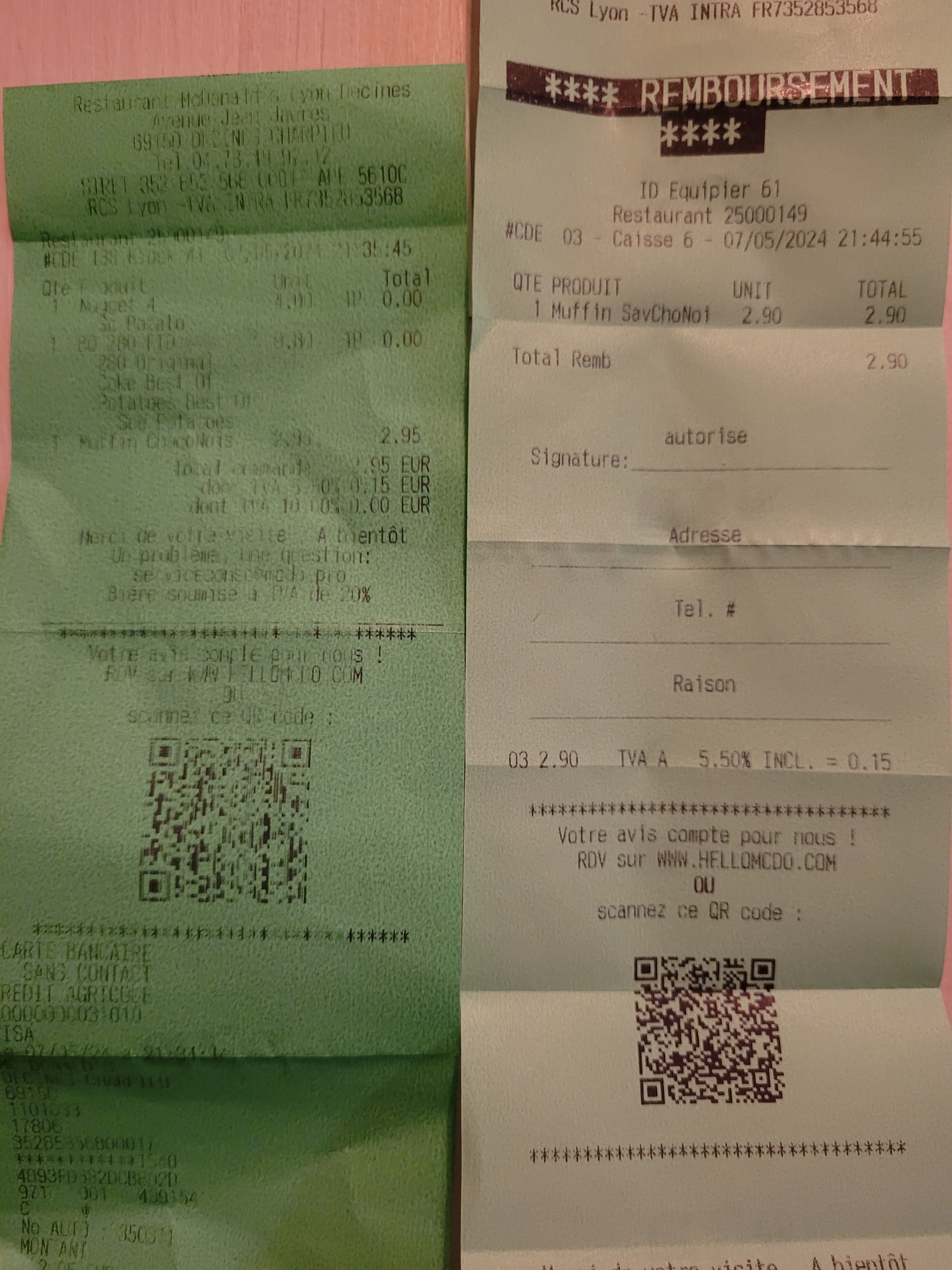 Je commande un muffin, n ayant plus le produit et que la machine a glace HS, je demande un remboursement. Comme sur le pj, le muffin coûte 2,95, Roihma la manager me rembourse 2,90, je lui fait remarquer mais elle me dit que je me trompe! Je vérifie mon ticket et lui montre et je lui dit gentillement que cela est indécent et faudrait vérifier les prix. Elle me prend de haut et ne s excuse même pas de l erreur et continue de dire que normalement il ne rembourse as quand ils n'ont pas les produits ! Ceci est considéré comme vol donc la manager en carton devrait rester dans son bureau ou faire des burger ça la remettrais un peu à sa place !