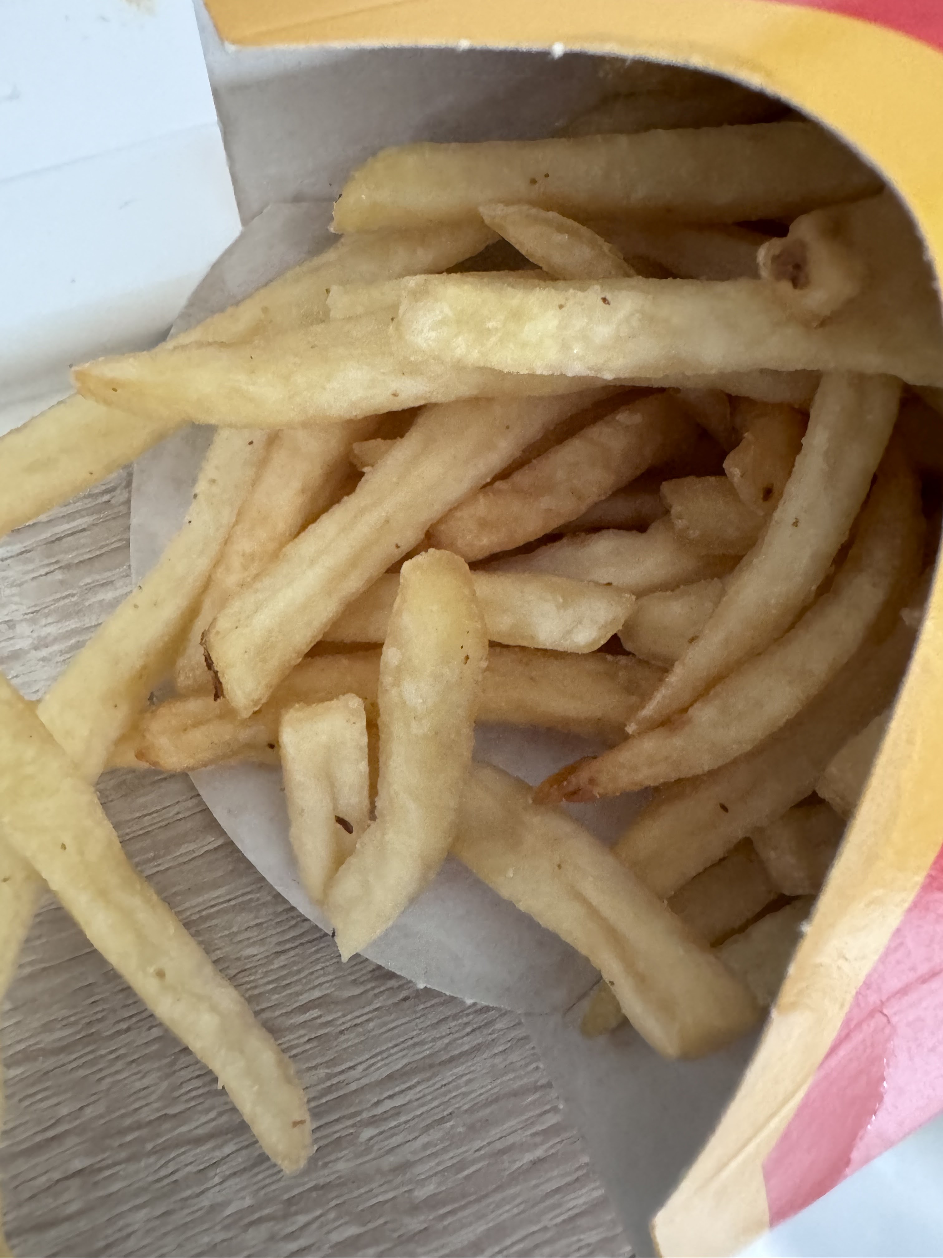 Je ne savais même pas qu’on pouvait être déçu d’un McDo…!! Les burgers sont vraiment petits!!!! Ils ne ressemblent clairement à rien, et manque les cornichons… Bref au prix des menus maintenant, ils pourraient faire un effort sur les quantités! La prochaine fois nous commanderons dans un autre mcdo!! Il est bien rare que je ne mette qu’une étoile dans mes avis!