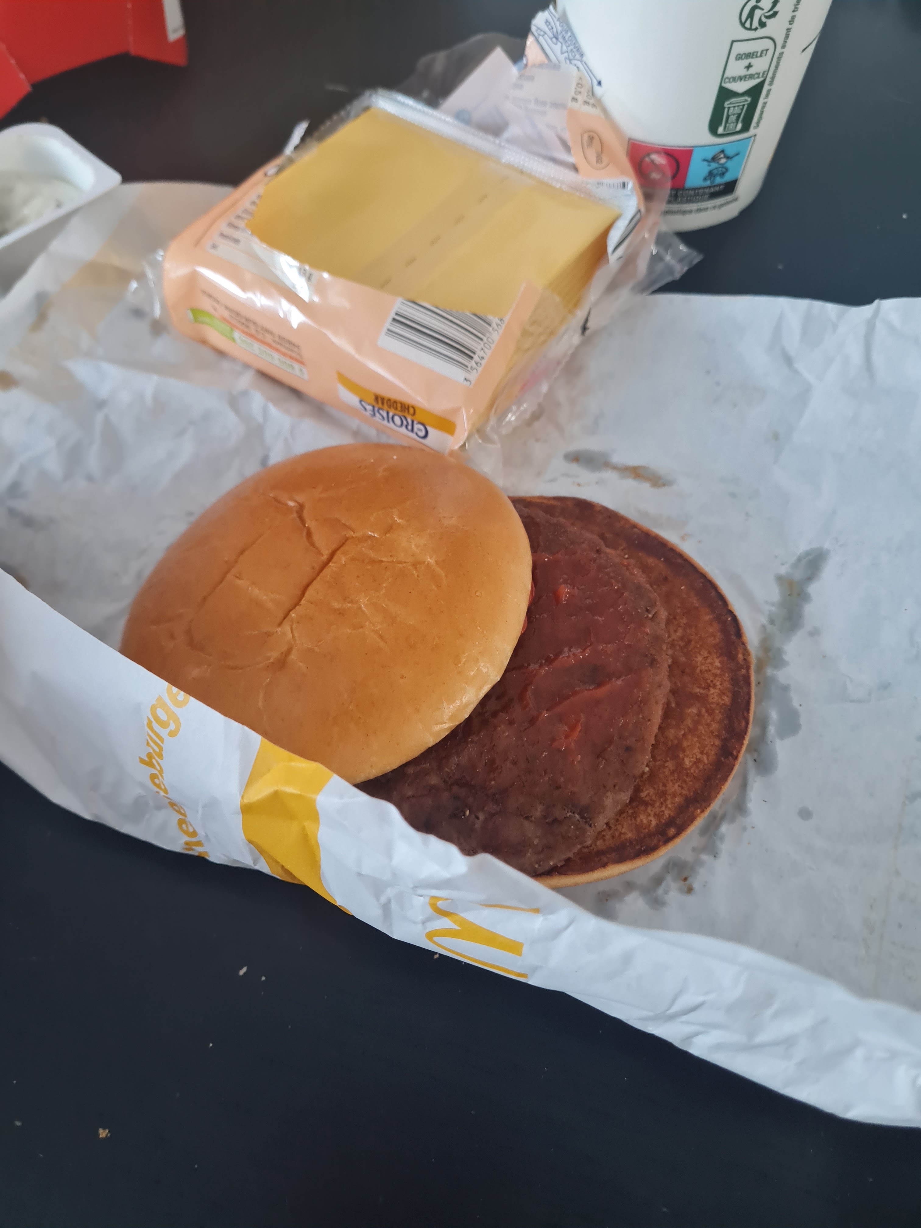 Je suis aller au drive cette fois ci Assez rapide mais à mon arrivée pas de fromage dans mes cheeses ... incroyable