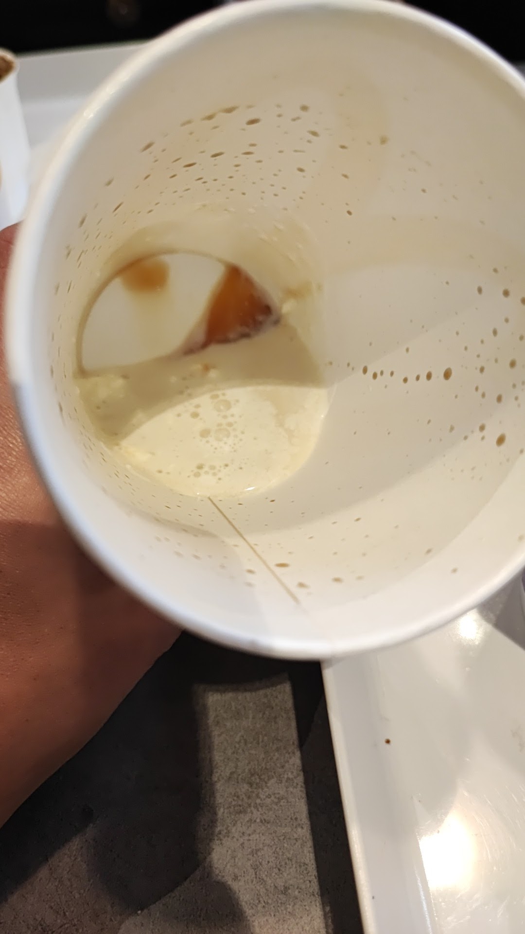 Vous avez déjà essayé un mcfirst au coca ou un Royal cheese écrabouiller ? On me donne mon sachet, je vérifie, il manque rien (pour une fois). Mais du coup sur le trajet je remarque qu’ils ont juste poser le couvercle sur ma boisson. Résultat: siège trempé (pour une voiture quasi neuve), sandwich imbibé, sachet à deux doigt de craqué tellement il est inondé et une moitié coca en guise de boisson. Vivement que BK ouvre parce que sa part en coui***.