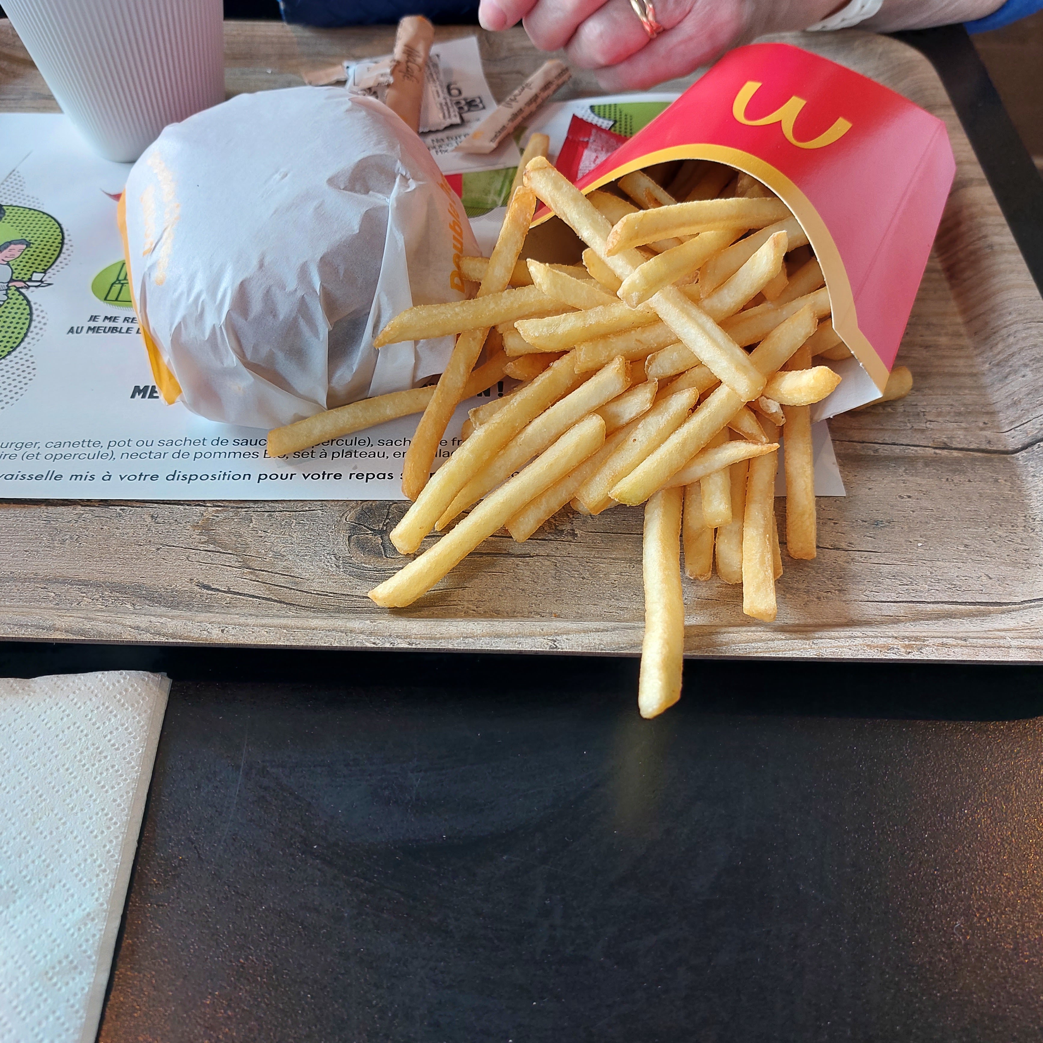 Après de longues minutes à se battre avec une foutue borne qui déconnait comme c'est pas permis, 20 min d'attente dans un resto quasi vide, pour avoir un repas froid, Les frites sont froides... des frites froides, c'est vraiment mauvais... Je constate, que plusieurs mois après, la qualite c'est encore plus dégradée, mais malgré ça, les prix continuent de gonfler...