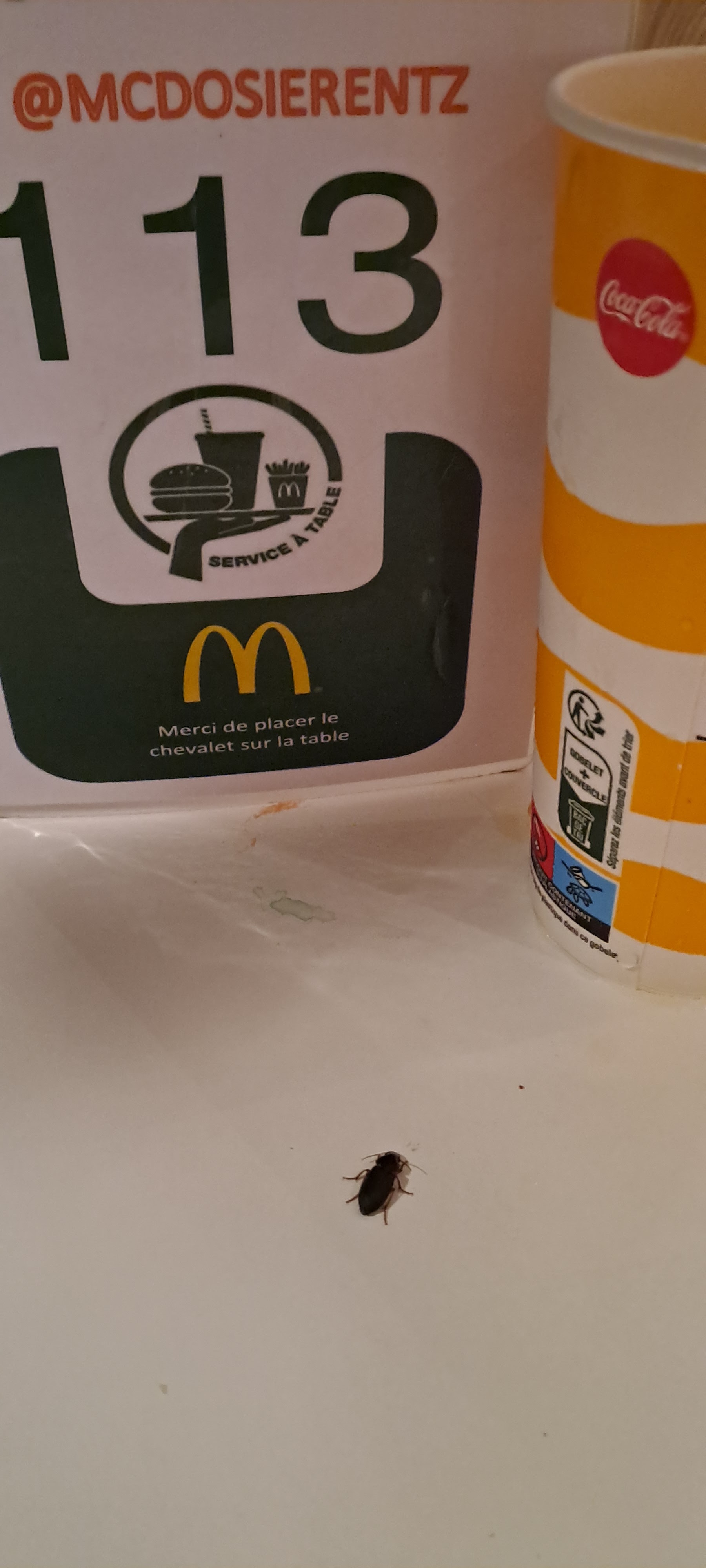 Il est 16h : au moment de la commande sur les bornes il n'y a pas de chevalet juste des feuilles plastifiées posées dans un coin. Des tickets de caisse et de commandes jonchent le sol. Poubelles qui dégueulent, à l'extérieur du resto (ce qui choque dès notre arrivée) comme à l'intérieur. L'état des WC est déplorable chez les hommes comme chez les femmes. Normalement étre MacDonald's c'est vendre, mais c'est aussi entretenir ses locaux et prendre soin du client