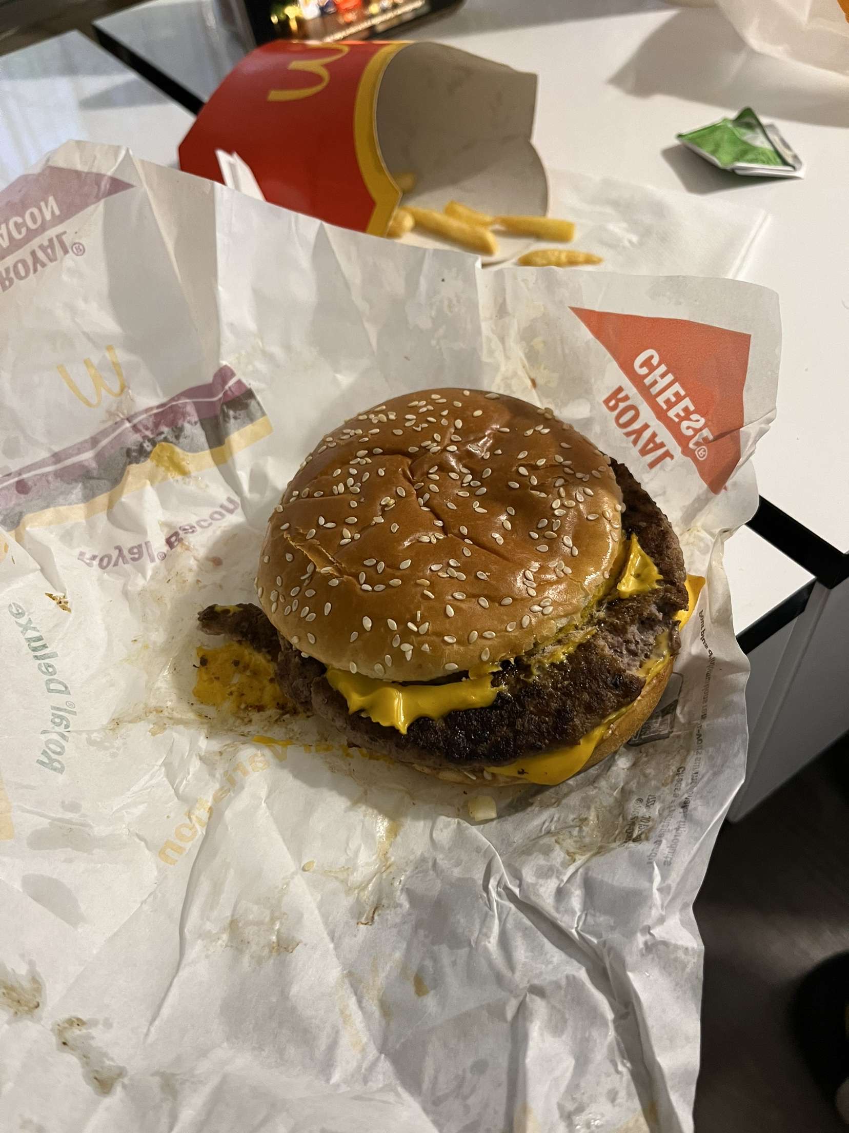 Ça faisait des années que je n'avais plus mangé McDonald's (je préfère Burger King), mais j'ai voulu y repasser pour confirmer que j'aime toujours mieux BK. Pour un prix similaire j'ai la sensation que j'ai moins mangé, je ne suis pas calé. En effet, le burger est bien plus petit que ceux du BK. Les sauces ketchup et mayo ne sont pas données automatiquement. Peu de choix de boissons. Mais points positifs : leur nuggets sont meilleures et la serveuse était sympathique. Pour conclure, je ne pense pas que je retournerai un jour au McDonald's, j'ai été déçu.