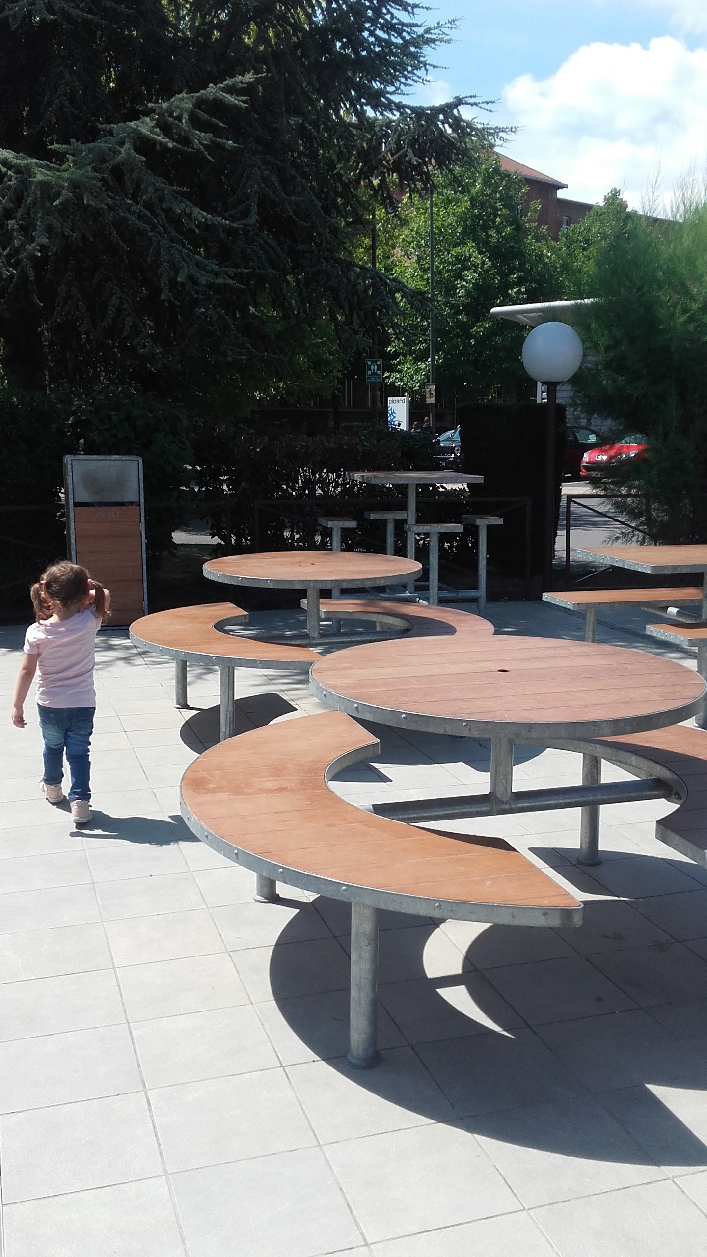 Parking avec peu de places. Les tables sont sales, les pieds collent au sol, les wc sont dans un état répugnant. Vous mangez, on vient constamment vous faire la manche.