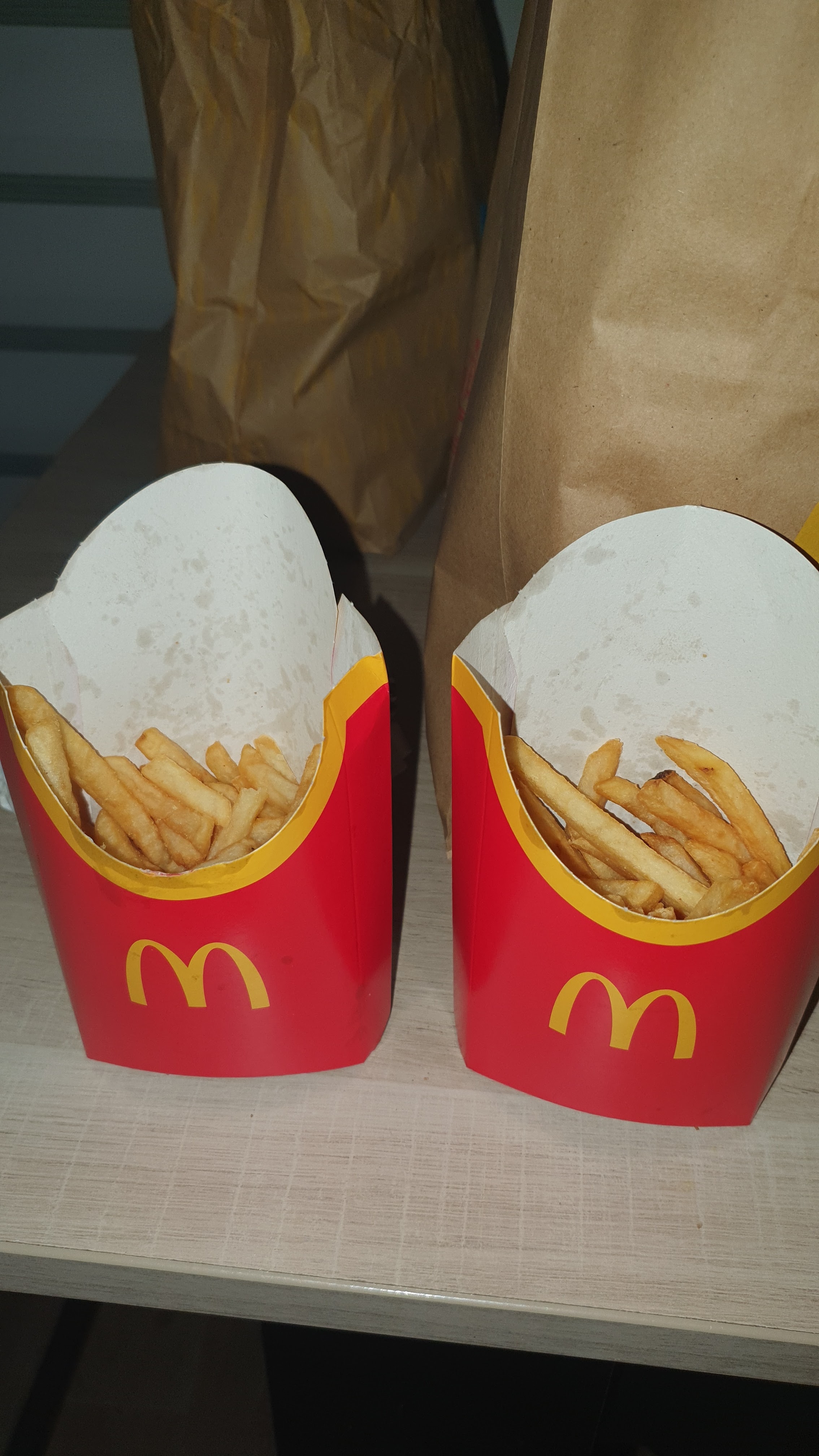 Passage au drive, on commande des menus maxi voilà ce qu'on reçoit comme frites , j'ai peur de prendre des menus simple la prochaine fois , s'il y a prochaine fois ! A fuir