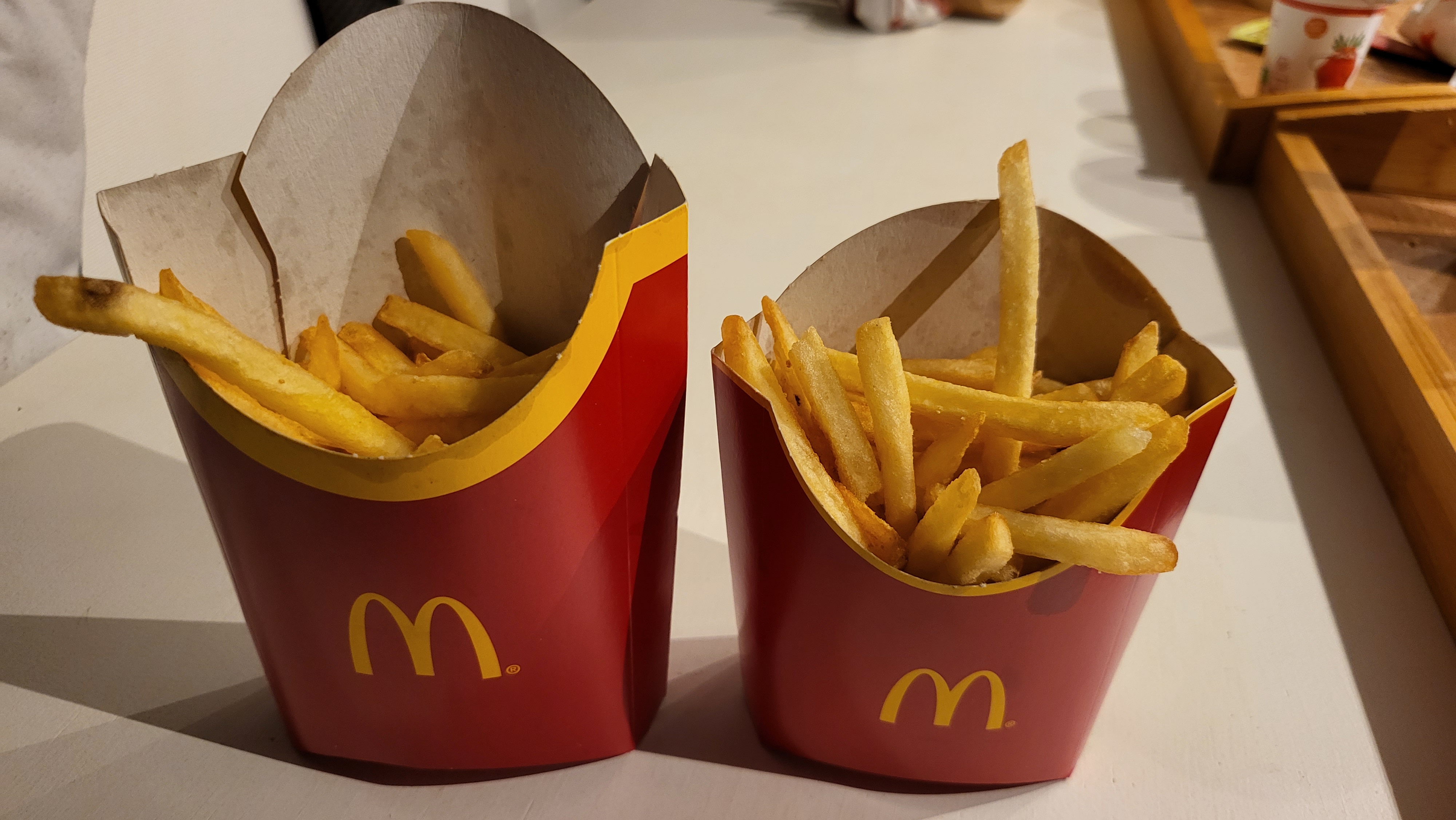 Pas grand chose à dire… Déçue comme souvent avec ce mcdo… On demande des sandwichs sans ketchup, on en retrouve à l’intérieur mais il a été raclé… Et puis une photo ci dessous pour montrer la quantité de frites… Quelle radinerie ! Il serait bon de faire un bon travail au niveau des cuisines.
