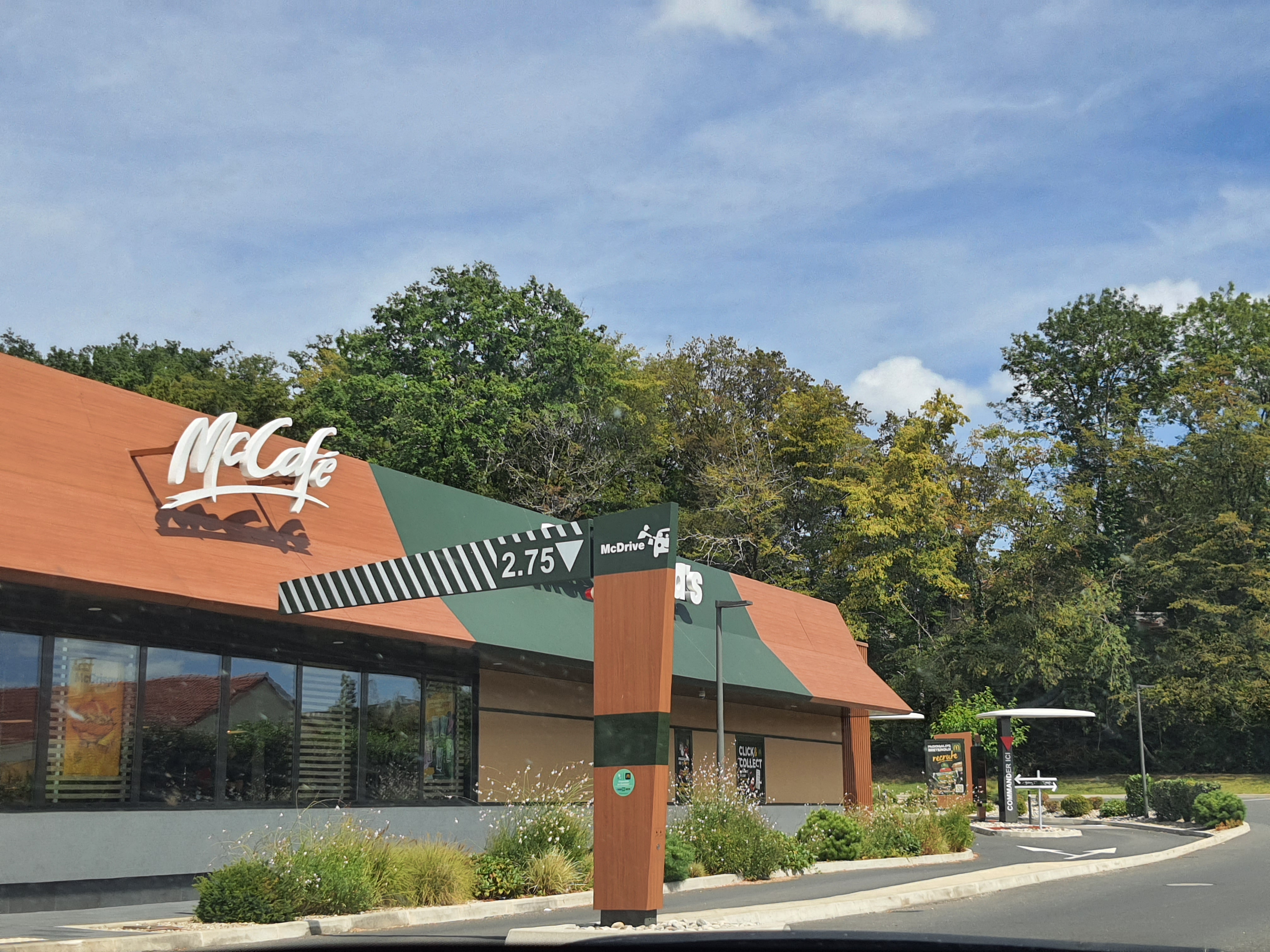 Bonjour Très beau restaurant intérieur comme extérieur dommage qu’il y est dés erreurs dans les commande un happy meal sans hanburgur est même sans dessert, pomme pote. Deux 280 vides aucune garniture. Pas de vaisselle non plus, dans du carton pour les boissons. Pour une commande à plus de 110 euros. Dommage, pour être beaucoup mieux, manque de sérieux.