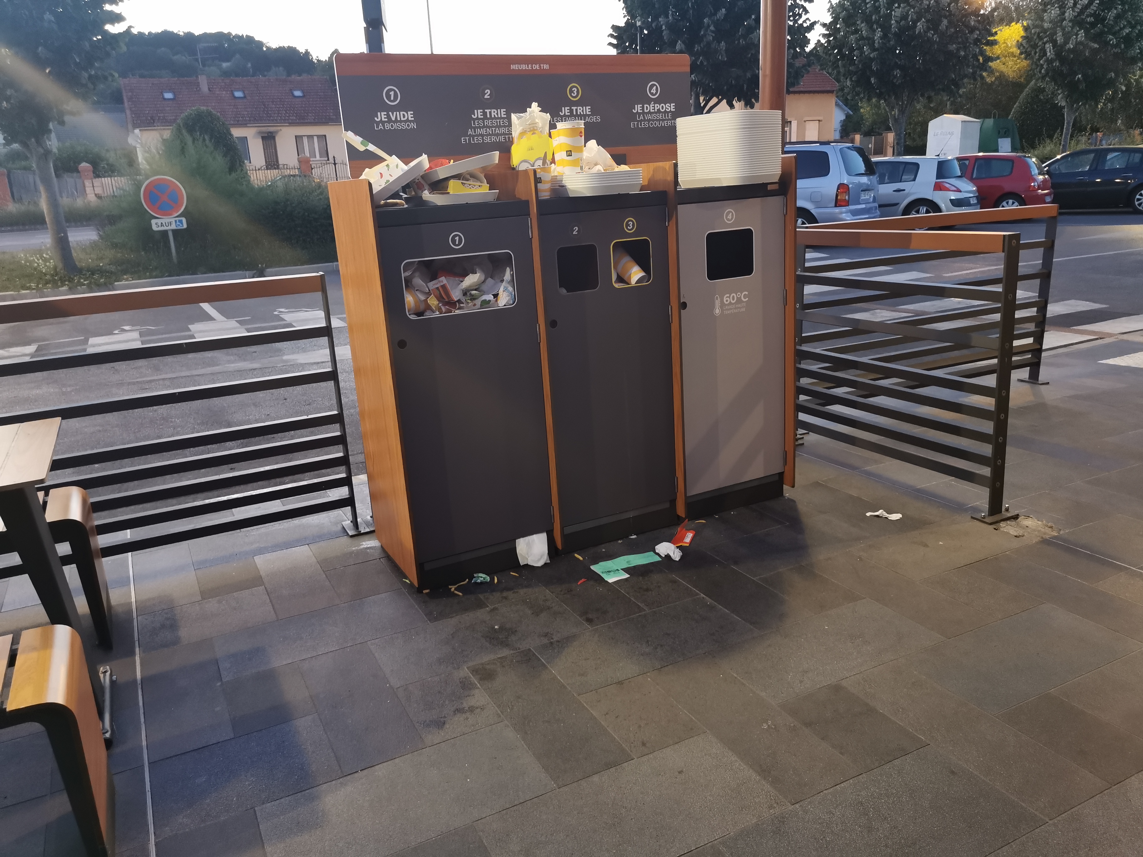 Tables sales employés au ralenti pas de serviettes des erreurs de commande.... Ou est le McDonald's d antan ... ou dès qu un client quittait une table elle était nettoyée prête à resservir ! ?
