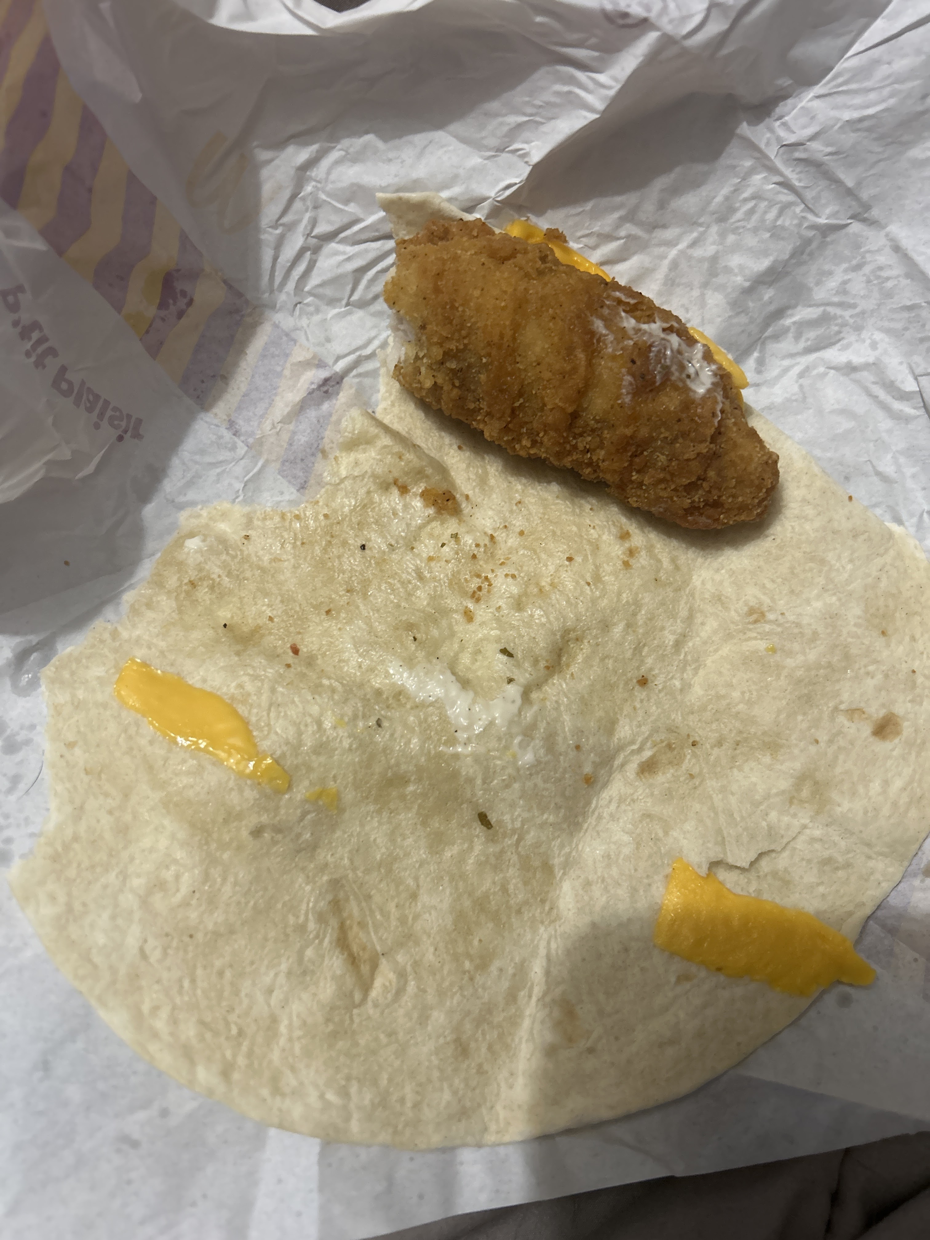 Très déçu ce jours dimanche 5 septembre 18h30 je commande un wraps new York poulet/bacon quel fut ma déception à la livraison je reçois un malheureux wraps tous moche limite je le sort de sa boîte il pendouille j'ouvre et la surprise dedans je n'est que 2 malheureux poulet qui ce batte en duel avec 1 chedar et 1 becon et voilà a 5€90 le wraps cela fait cher ... 😡 Et bien sûre quand on appelle personne ne répond et bien je ne reviendrais pas dans ce mc do